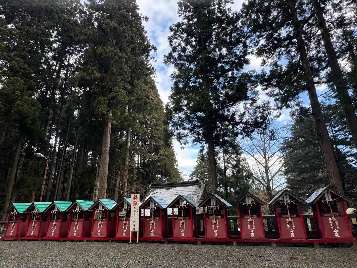 拝殿前で右方向を見ると、ずらっと並ぶのは<十二支社>。