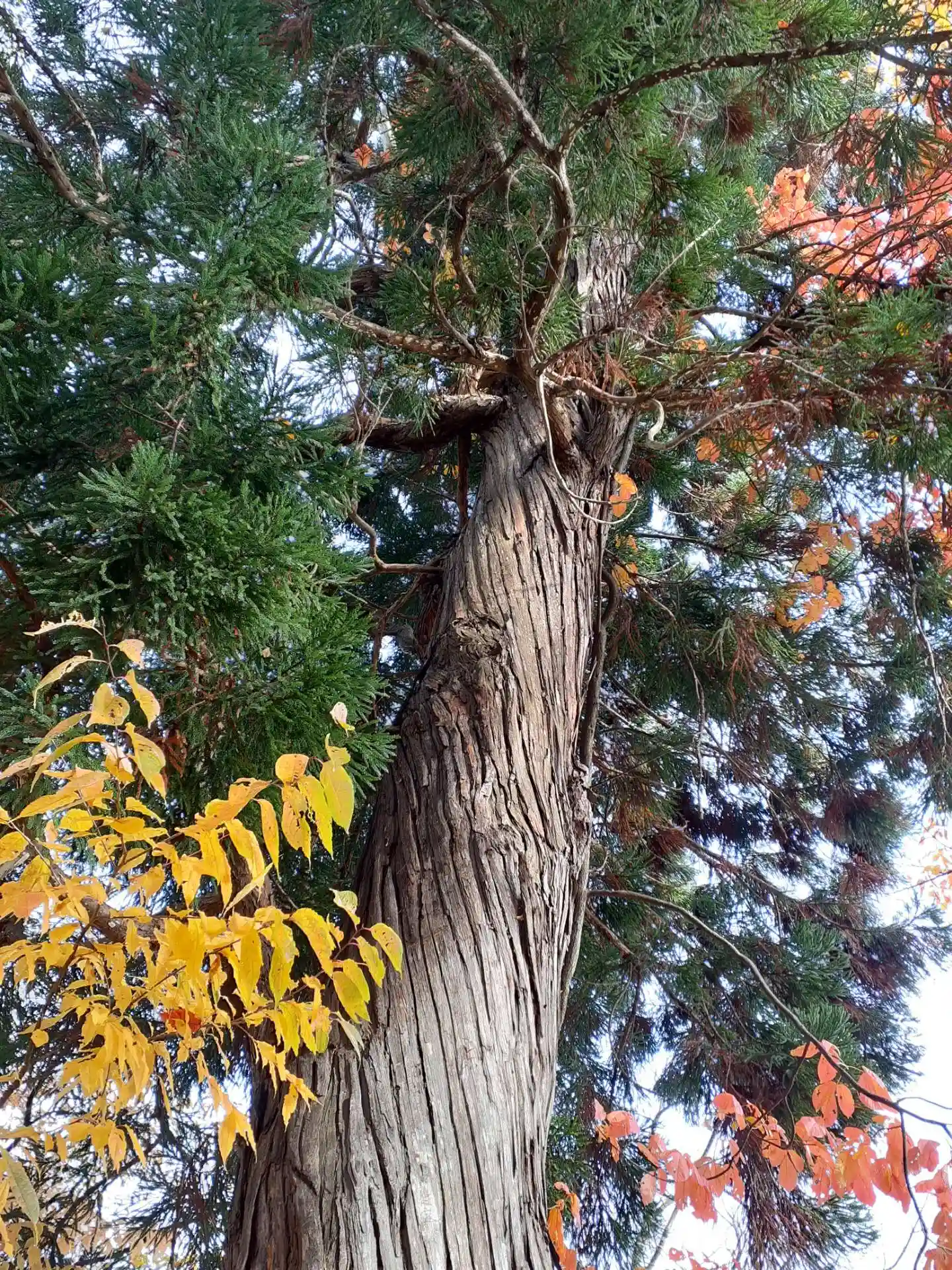根本からねじれてはえているく杉木です