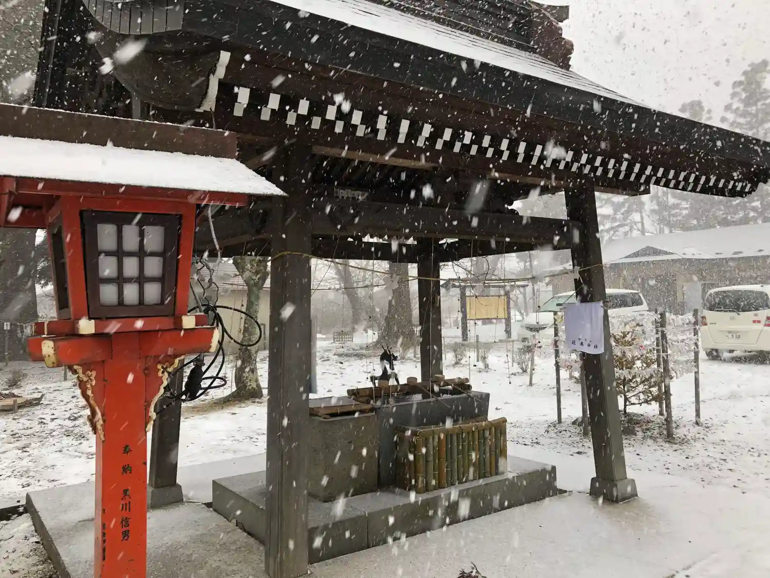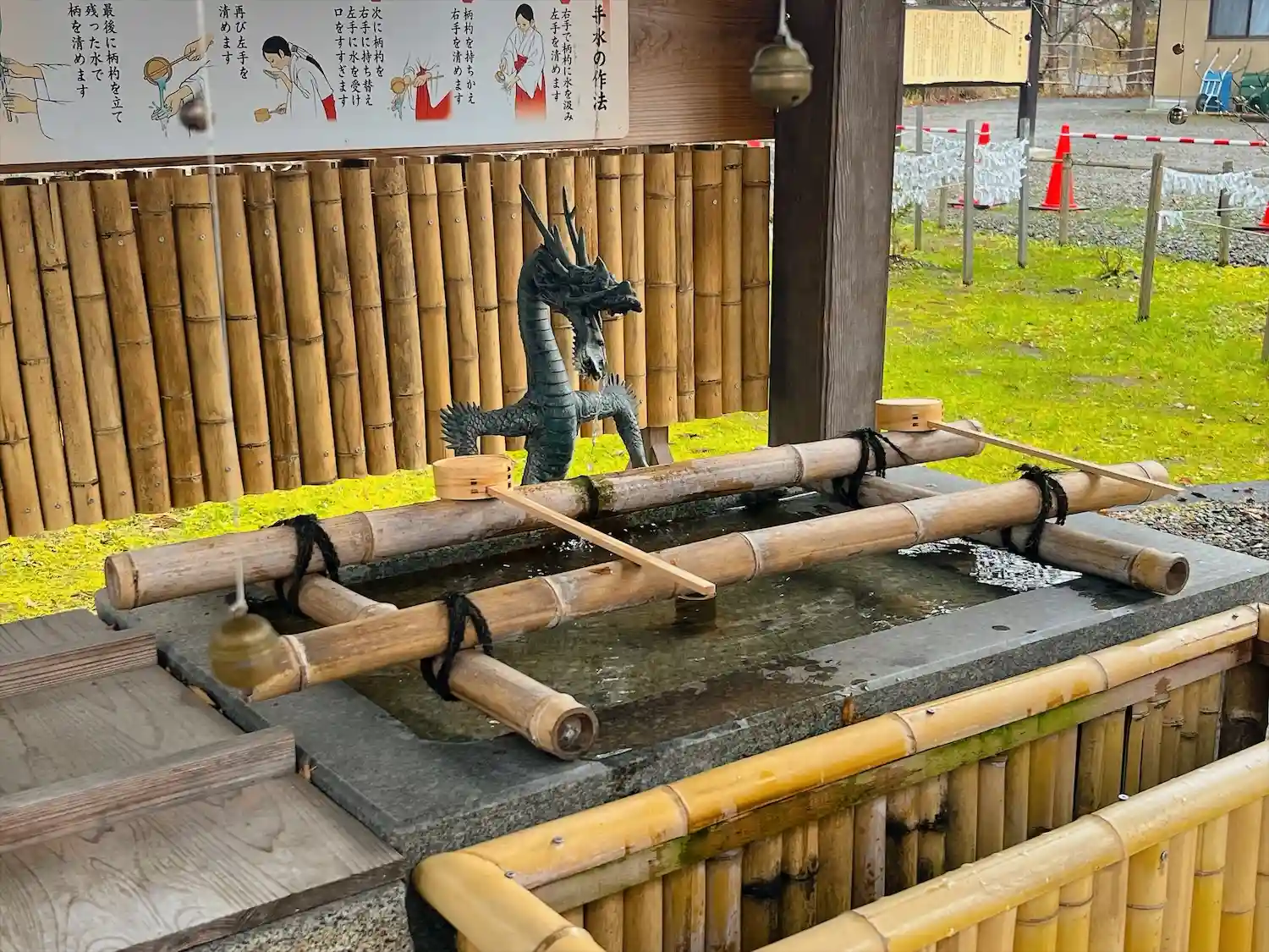 鈴付きの紐があったので、鈴を鳴らさないように慎重に手水させていただきました。