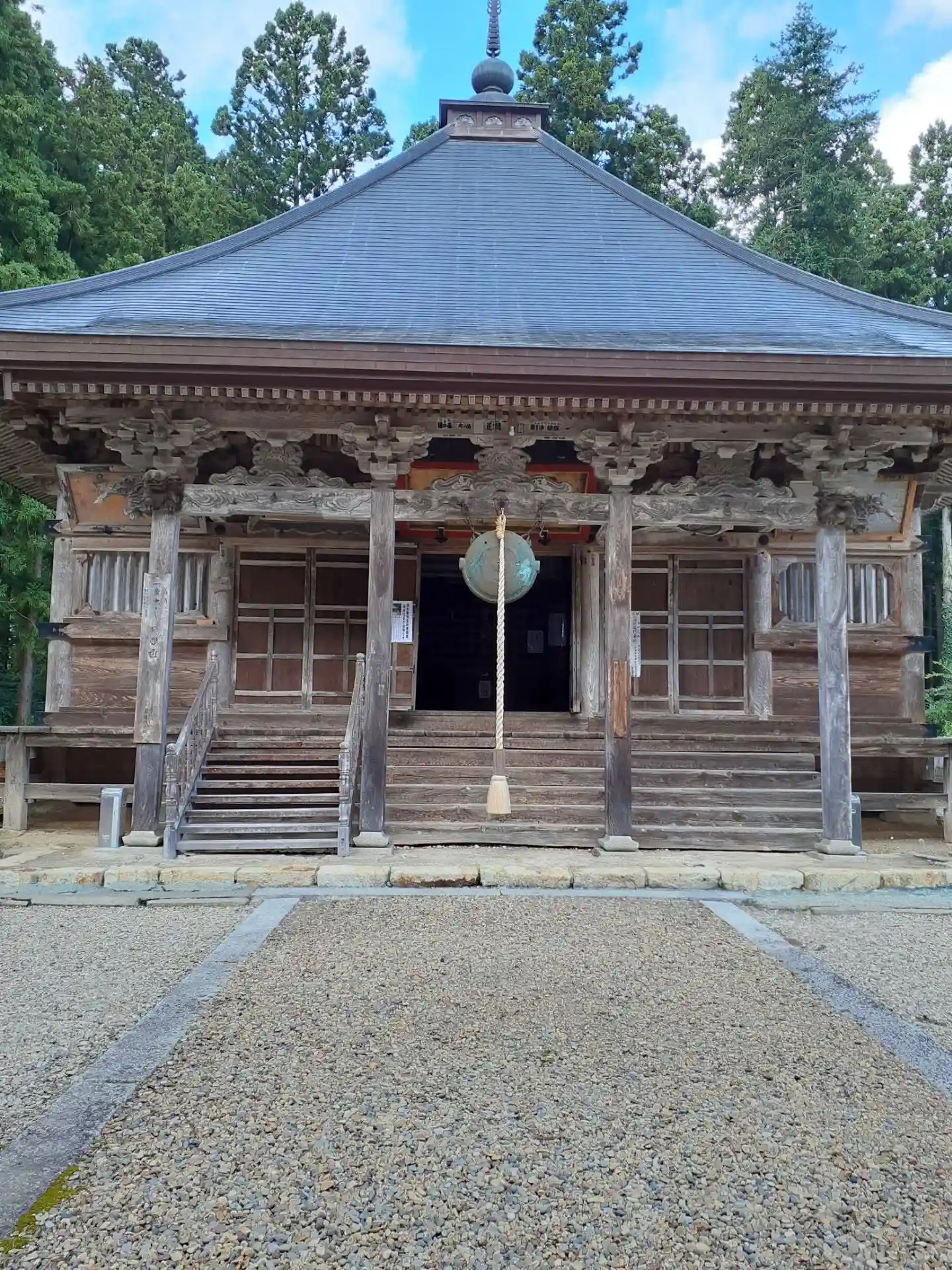 熊よけ??の大きな音にびっくりしましたが、参拝者もいなかった為、ゆっくりと参拝できました。山門はも…