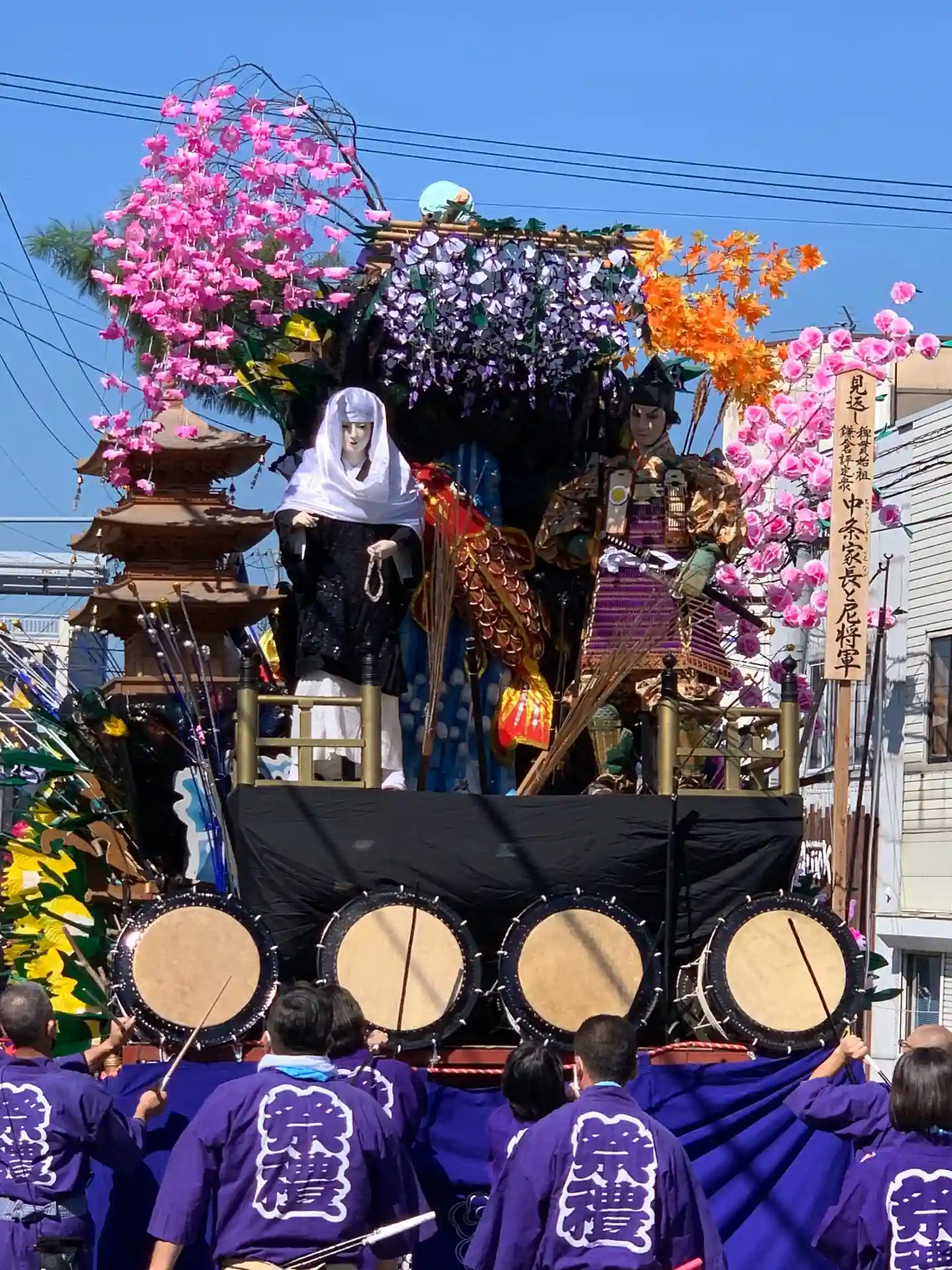 すぐ近くを練り歩いていた花巻祭りの山車です。