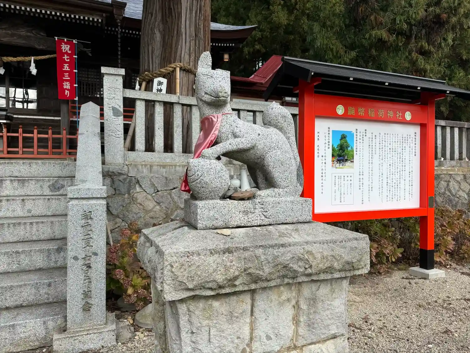 狛犬さんではなく狐さんがいるのですがどちらも左耳がない由来…