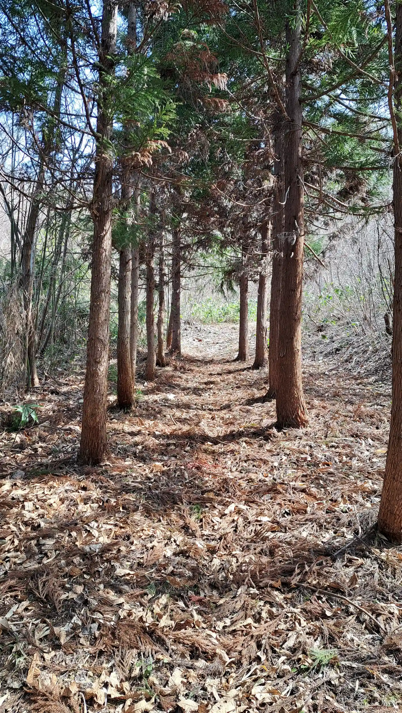 ナゼかここだけキレイに並んだ杉