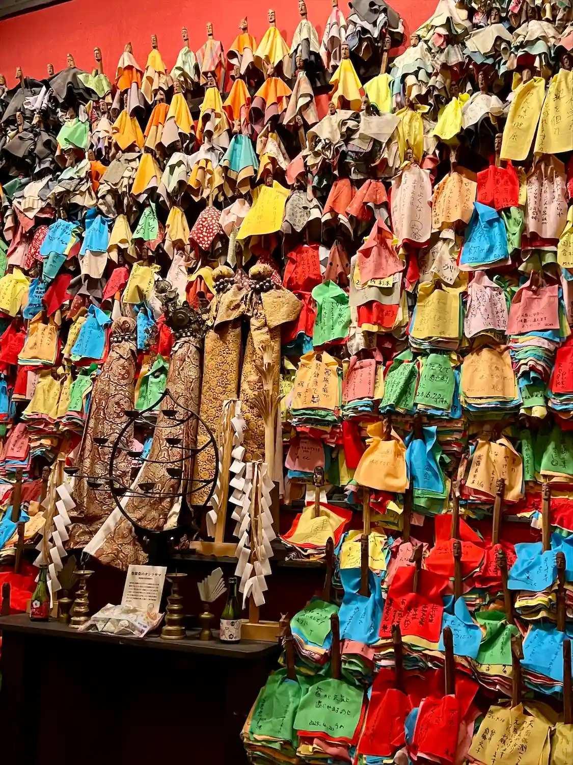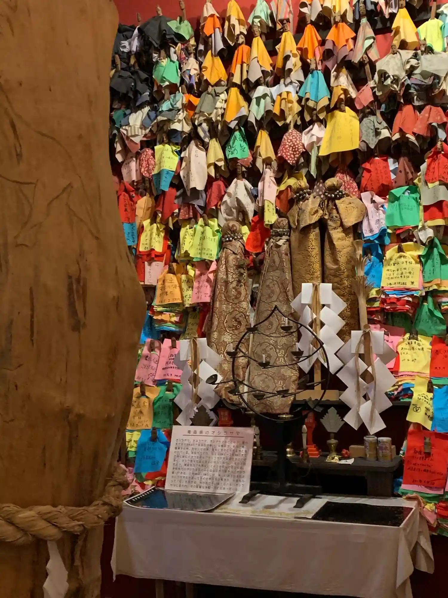 7.8畳程の部屋に1000体のオシラサマがいます。部屋の中も人がいっぱい、、空くまで待ちます。