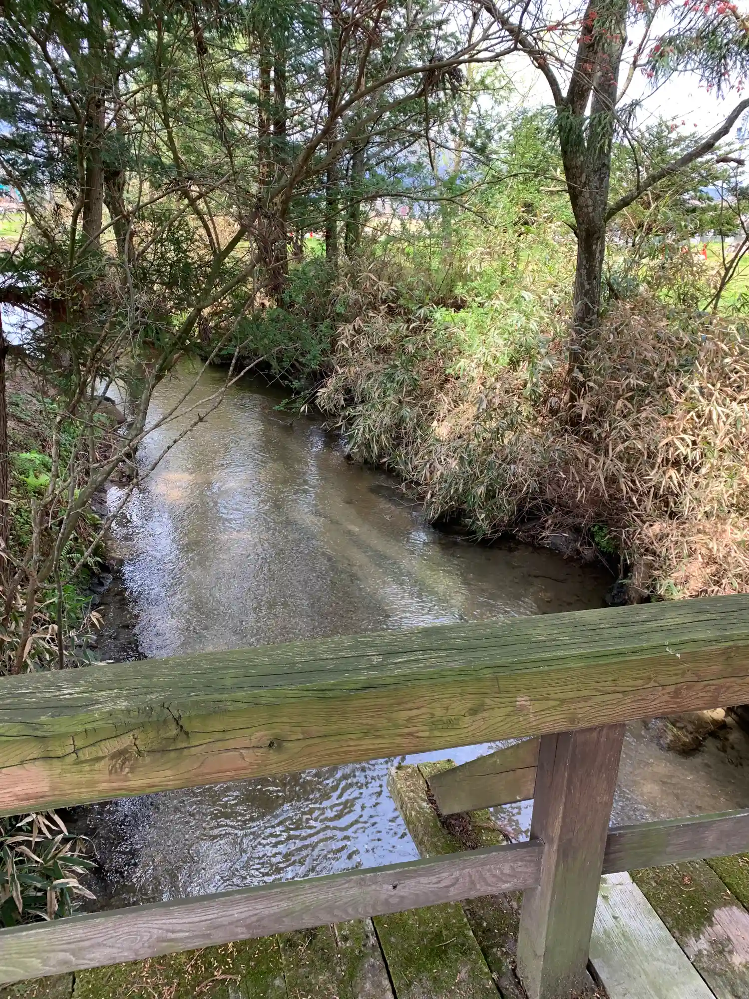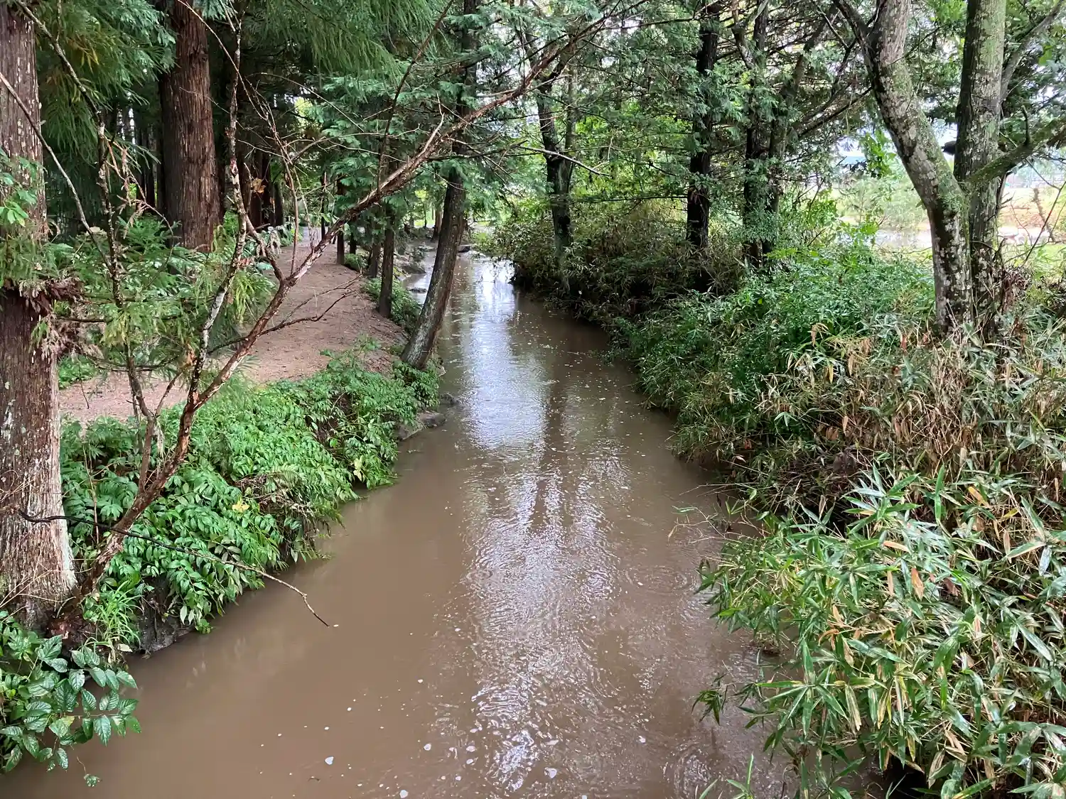 境内の裏手を流れる小川が、遠…