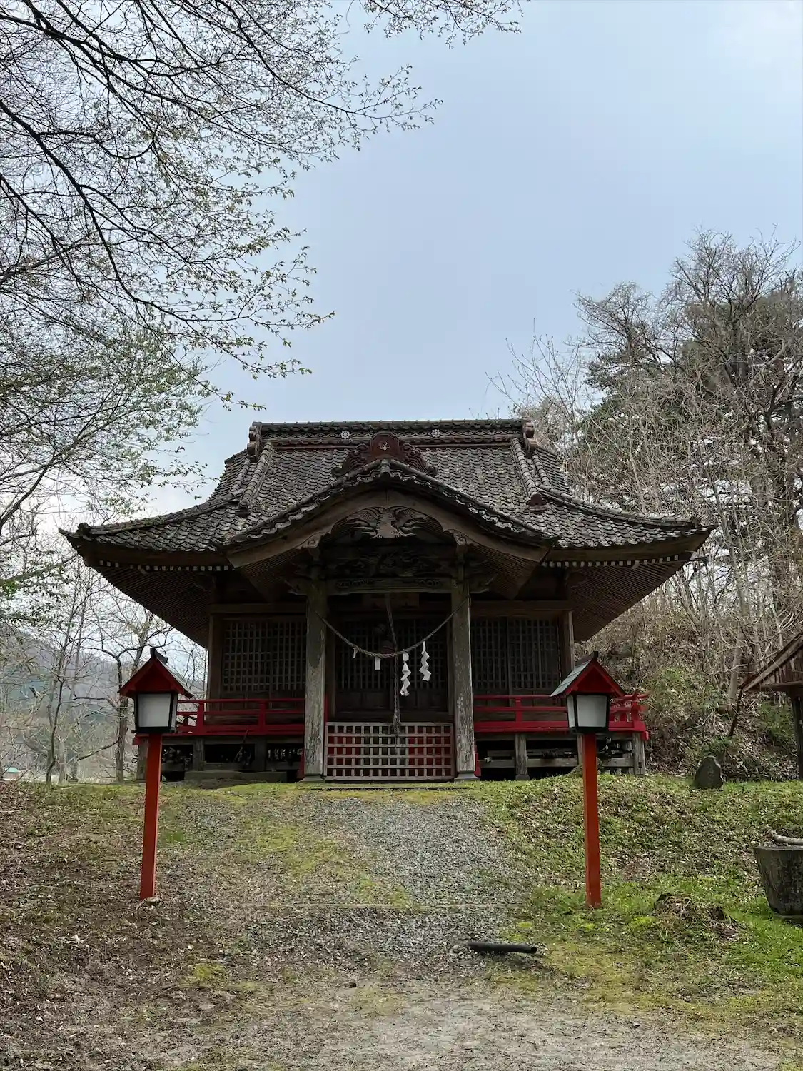 その先に佇む本殿は、梁に刻まれた鷲や龍が躍動感あり、なかなかに趣深いお社です。