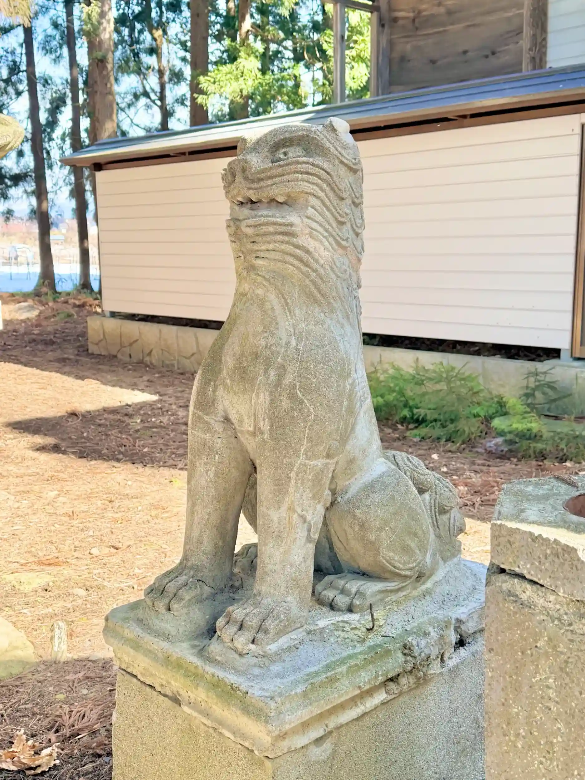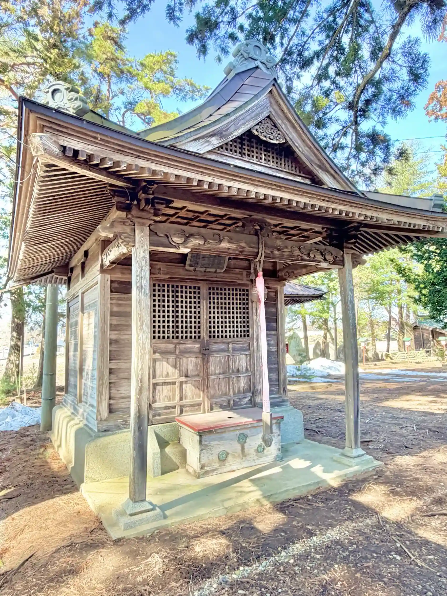 薬師大神 天正15年(1587)稗貫郡大瀬川の領主瀬川隠岐守重宗の夫人が眼病を患った際、少名毘古那命に祈願したところ間もなく平癒した。城下葛巻川のほとり一宇を建立し、深く帰依していたところ、大洪水のため流失してしまった。幸いにも、支流石沢川医王ヶ淵に沈んでいるのを照井大学が見つけ、その像をひきあげ、石沢山に神殿を建立し、この流域の守護神として崇敬してきたが、再三の山火事で被災するため、宝暦年中、参拝の便宜のため、現在地に遷座したものである。