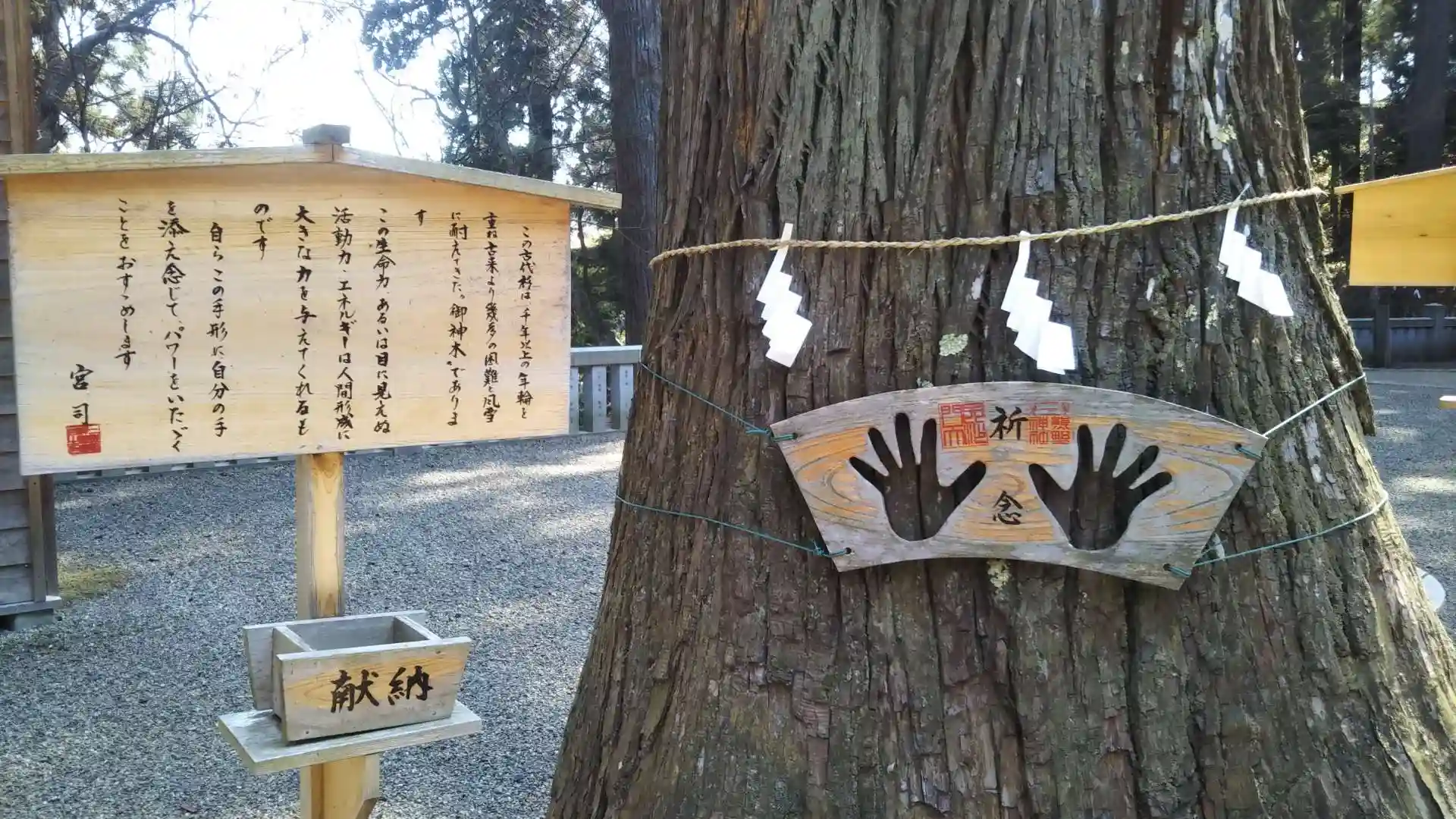 木枠に両手をはめてパワーを頂きます🌳