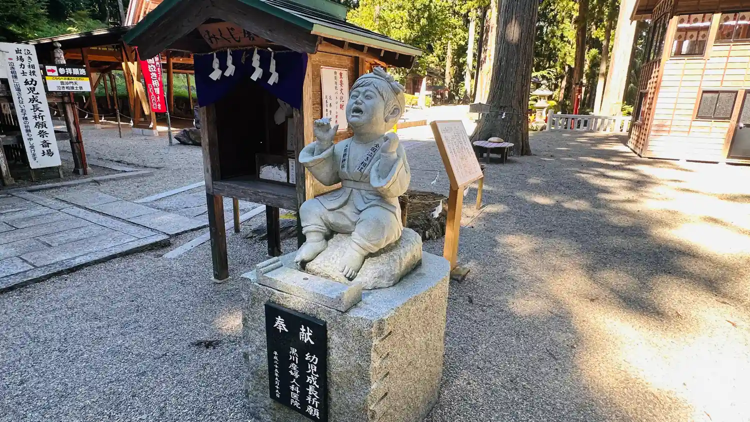 令和3年4月11日に参拝致しました。泣き相撲の開催地で可愛い石像がありました。