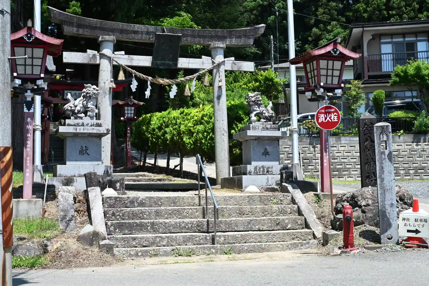 神社に行く道は狭いので、近くの駐車場に停めて歩いての参拝でした。