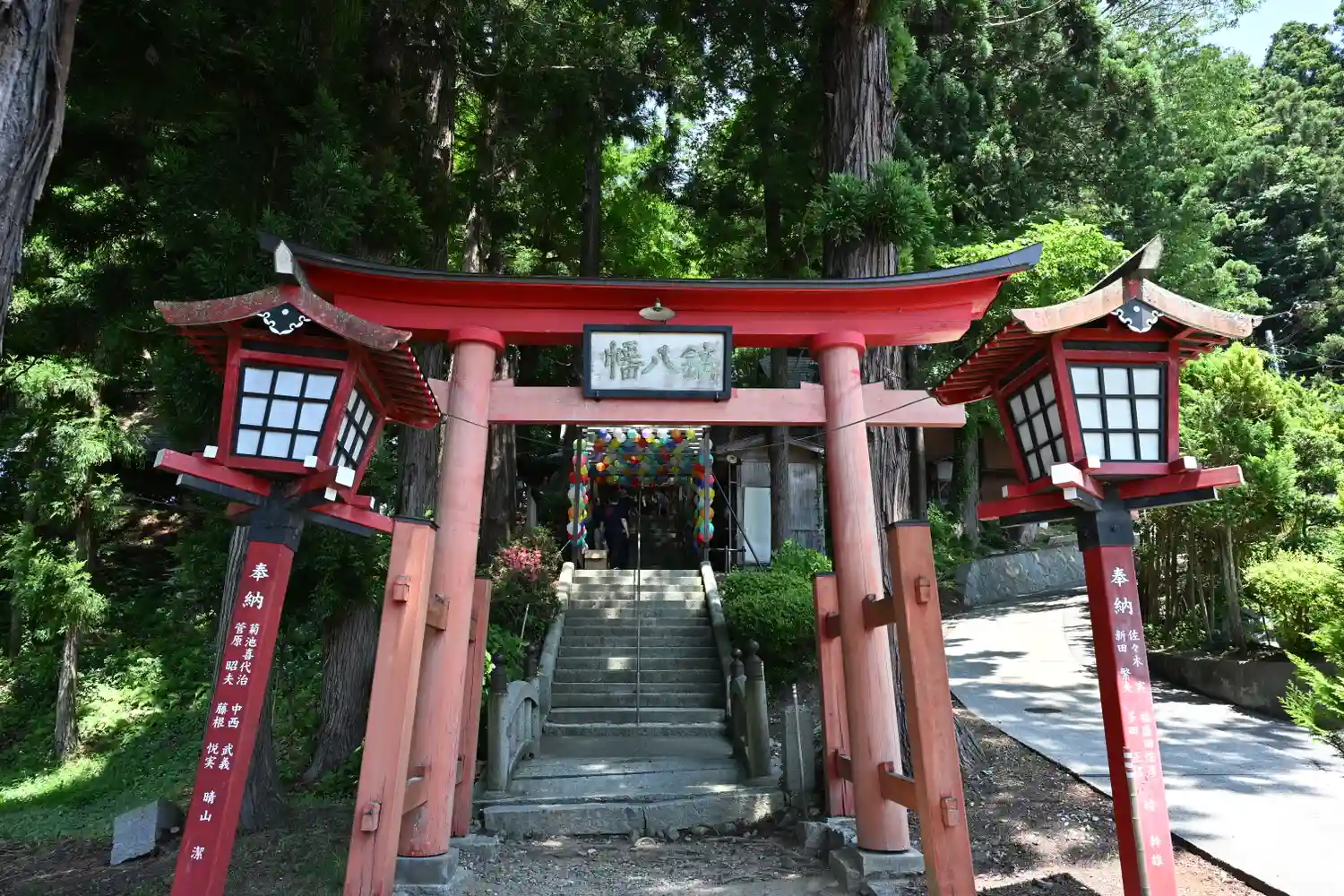 境内にはカラフルな提灯やてるてる…
