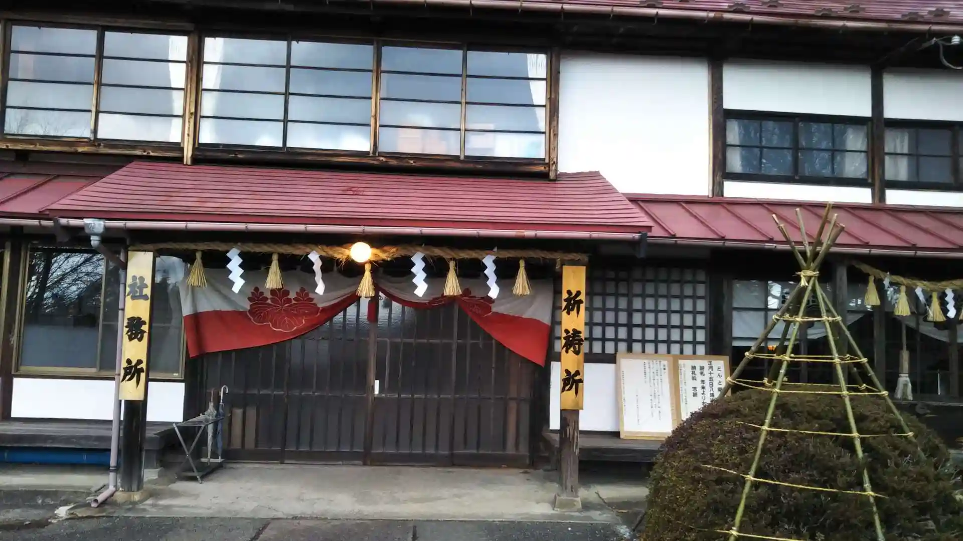 社務所、疲れた為か斜めになってしまいました