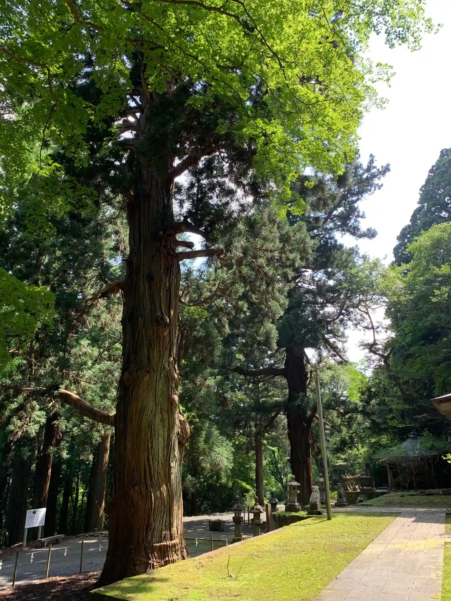 大きなスギの木に圧倒されます。