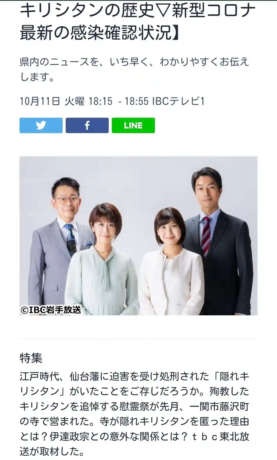 10/11(火)18時15分~IBCテレビ