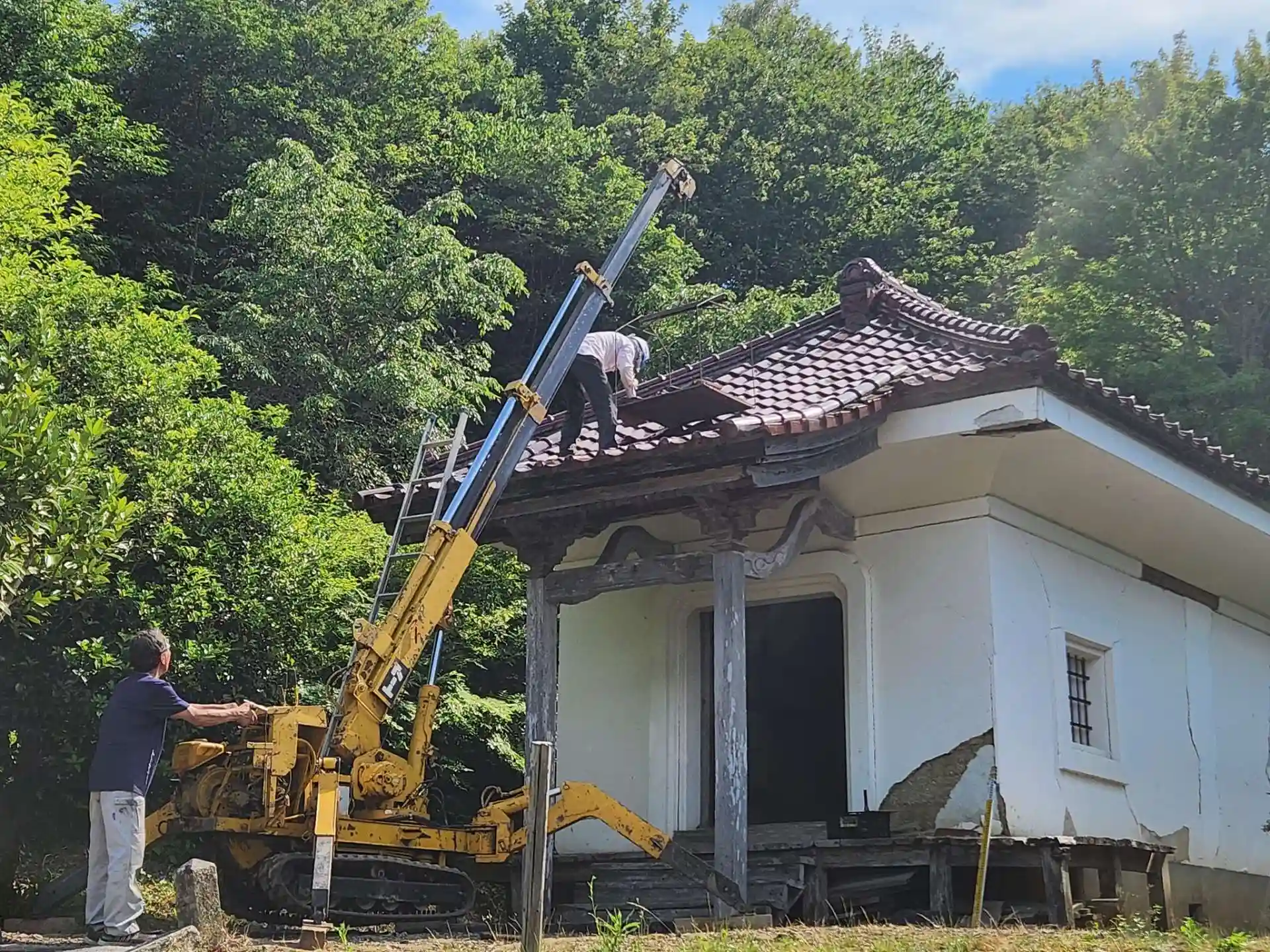いよいよ不動堂の一部解体が始まった。