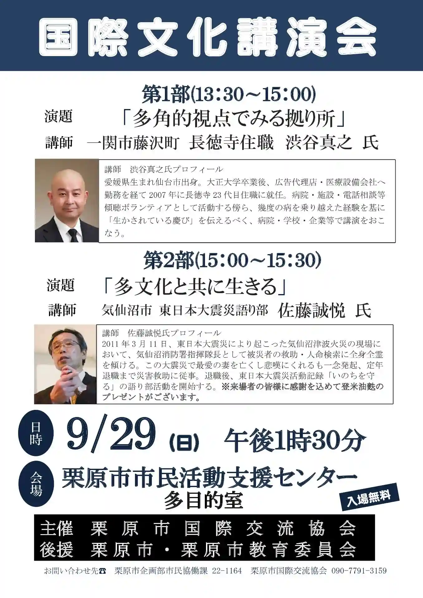演題:「多文化とともに生きる」