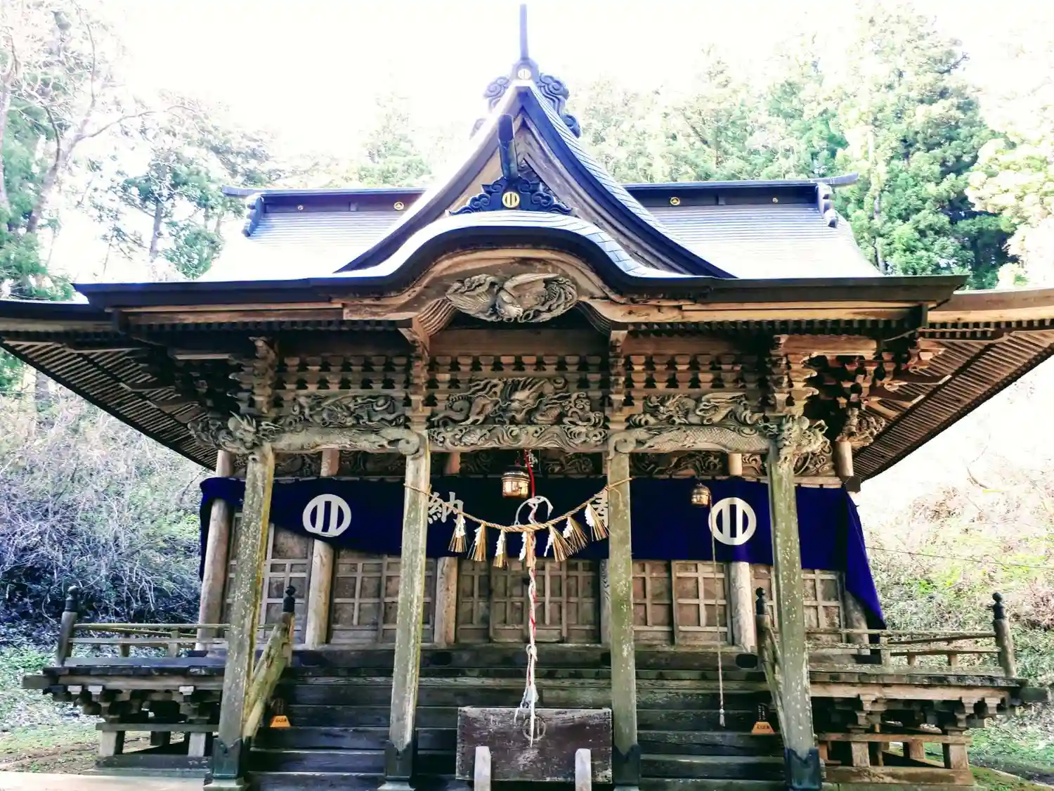 | 文化財 | 「お妙見さま」として古くから地域の人々の信仰が厚く、また、本県最古の在銘鰐口の「銅鰐口」や阿部貞任が着用していたものを源頼義が奉納したと伝えられる「金銅製前立」などの県指定文化財を所蔵している。本殿の彫刻は一見の価値あり。毎年1月初旬には蘇民祭が開催される。 |