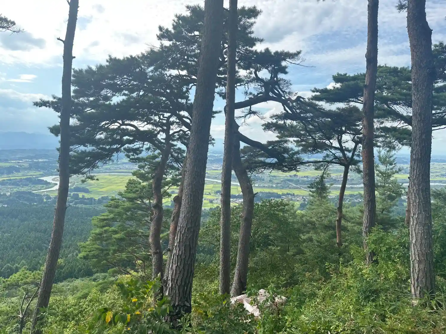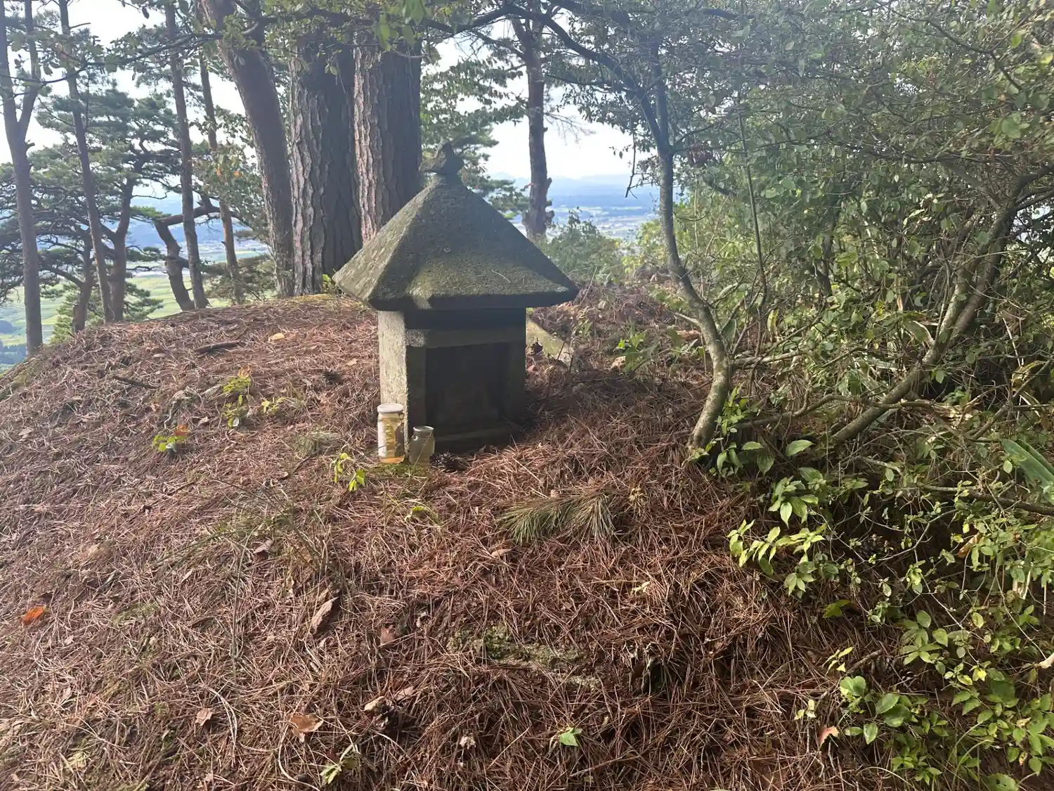 《高台からの景色》 祠の奥に簡易な展望台があり、広がる平野を見下ろせます。