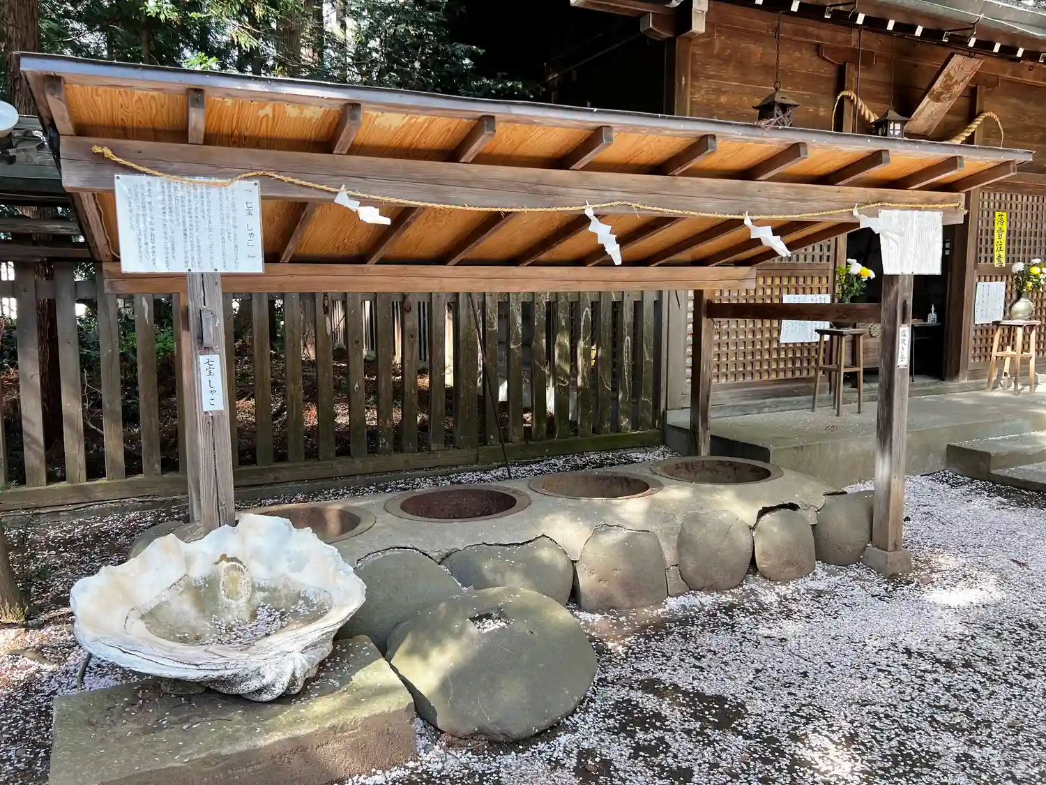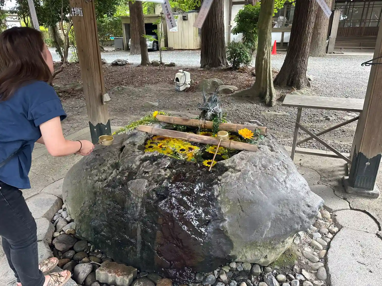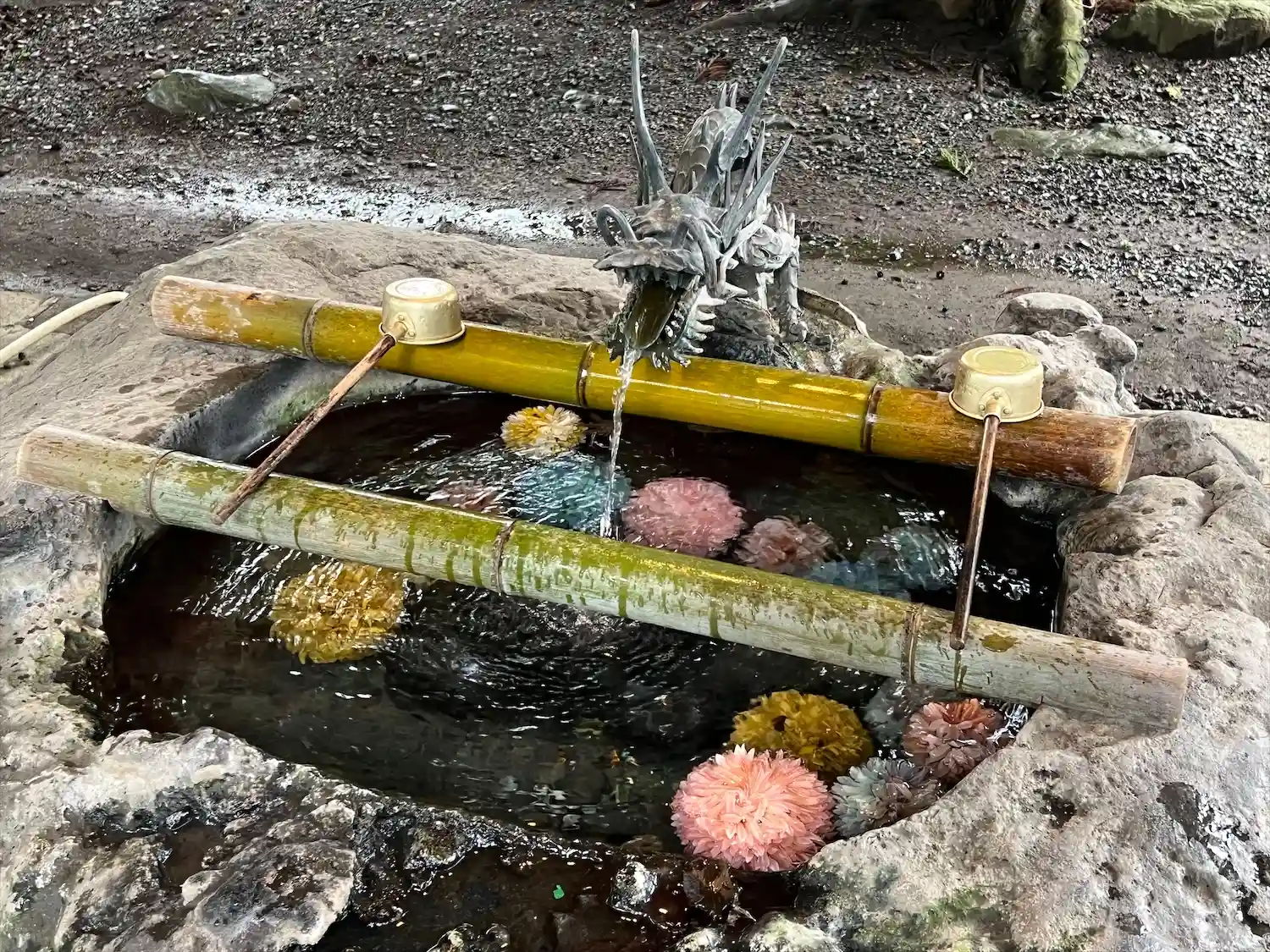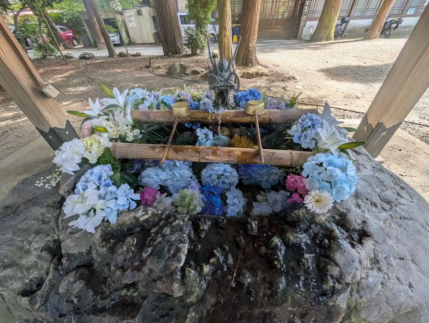 手水は丸い花が沈んでいて可愛い