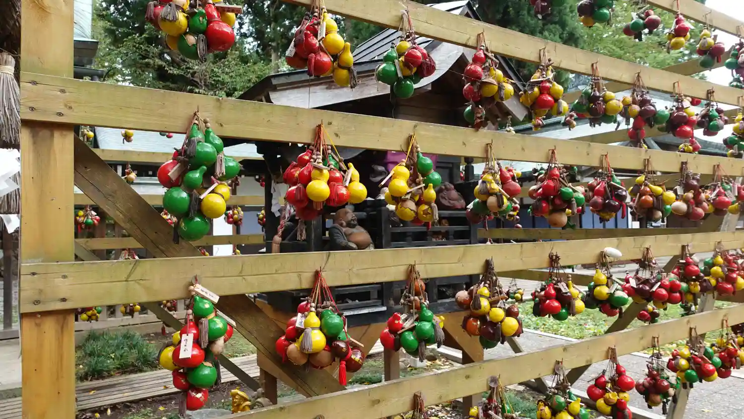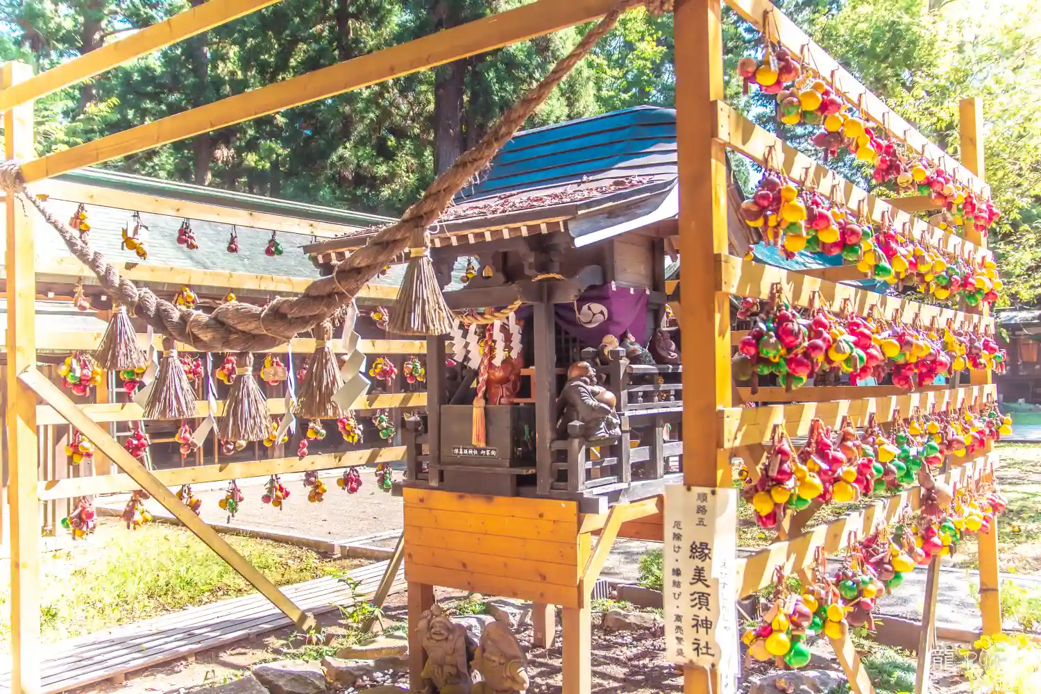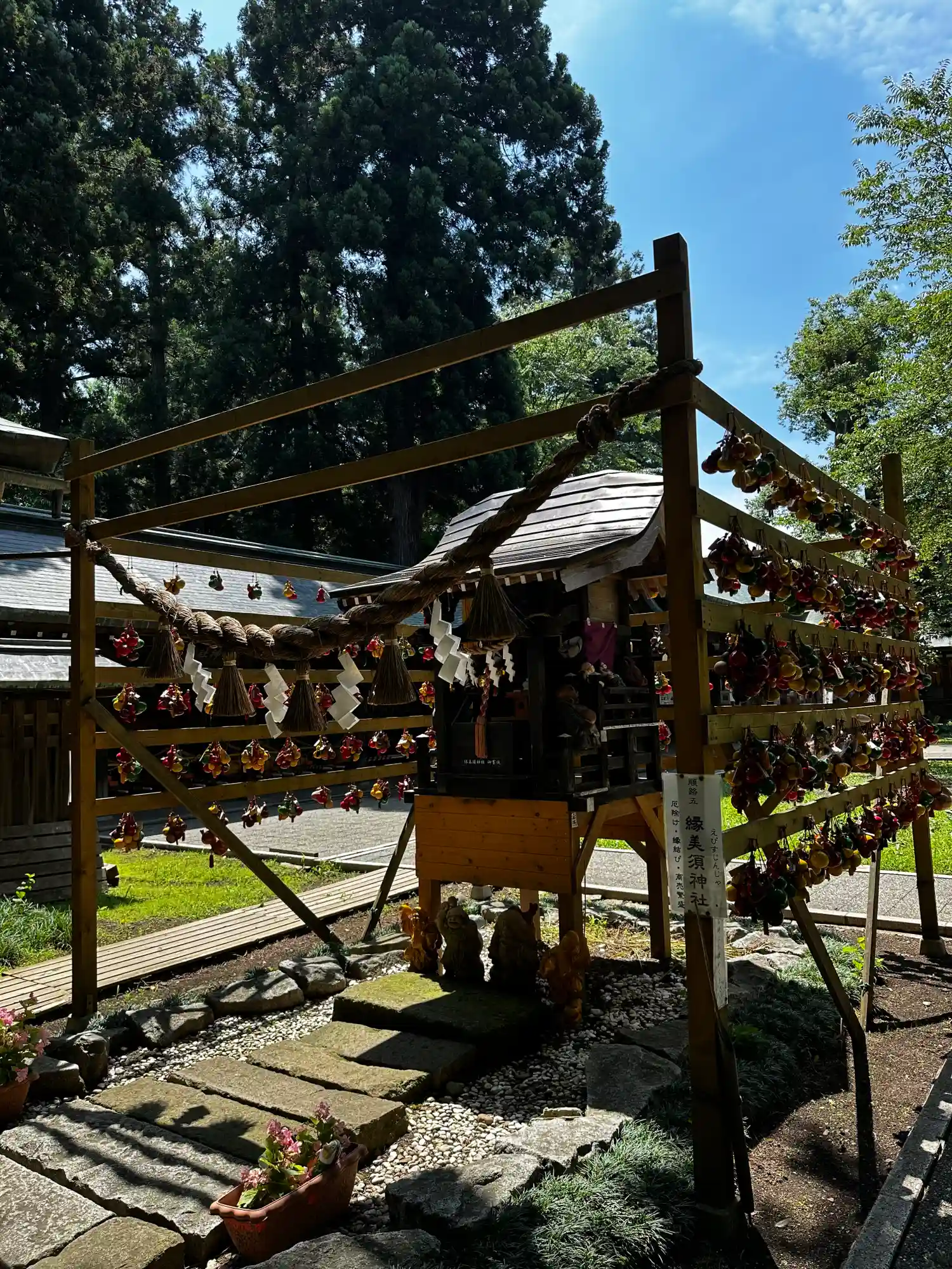 旅の道筋に一宮を見つけて参拝しなければと立ち寄る。境内恵比寿社な掛けられた願掛けの瓢箪が可愛い。