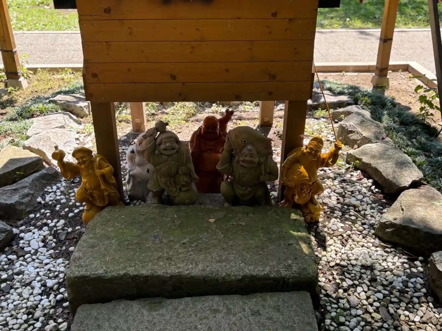 縁美須神社の社の周りに、七福神が座っていました。なんか可愛いらしい😊