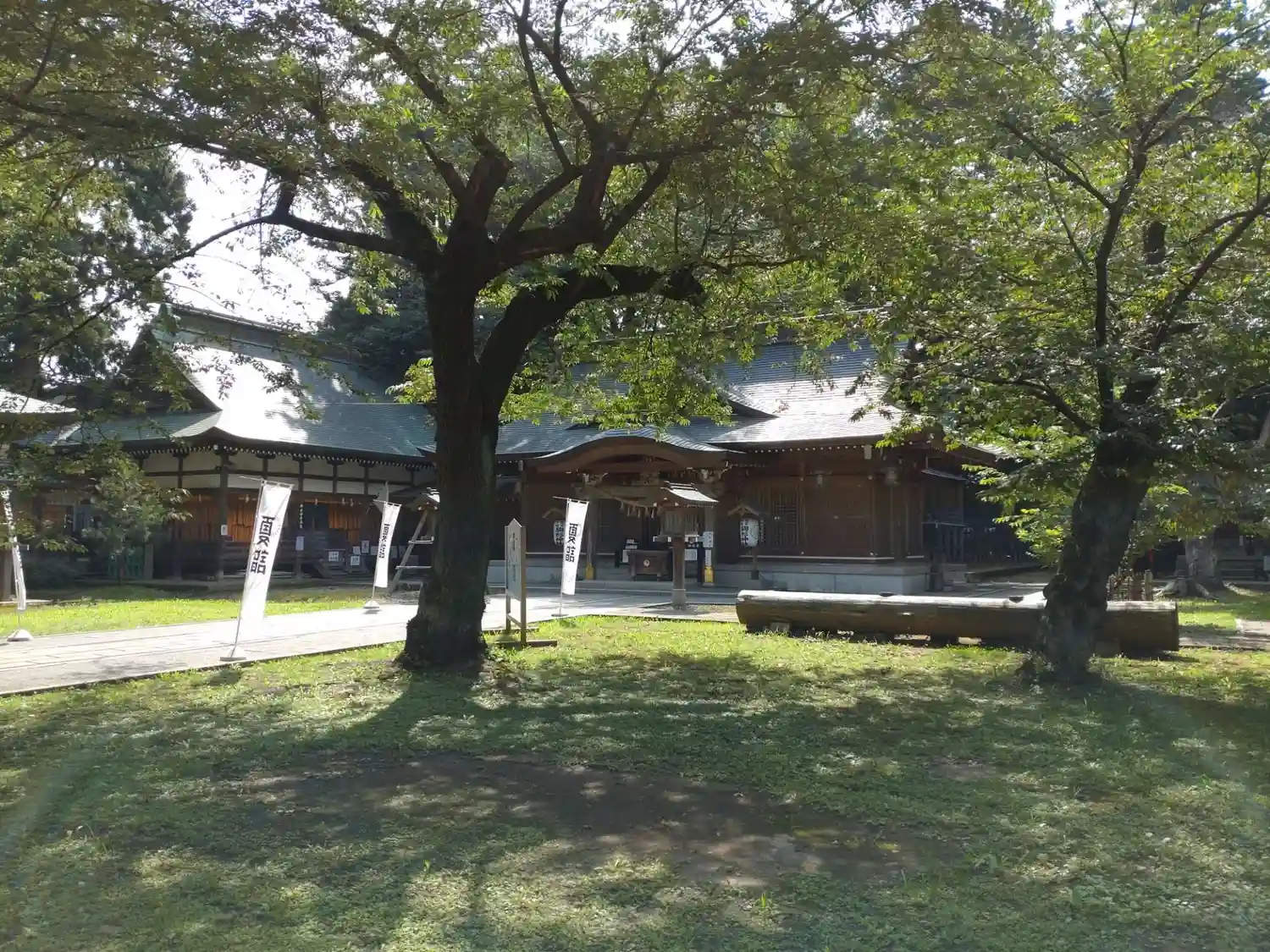 祈祷者控室の建物の左側(東側)にある<神楽殿>。これも雪国ならではなのか、渡廊下で左右の建物と繋がっている。