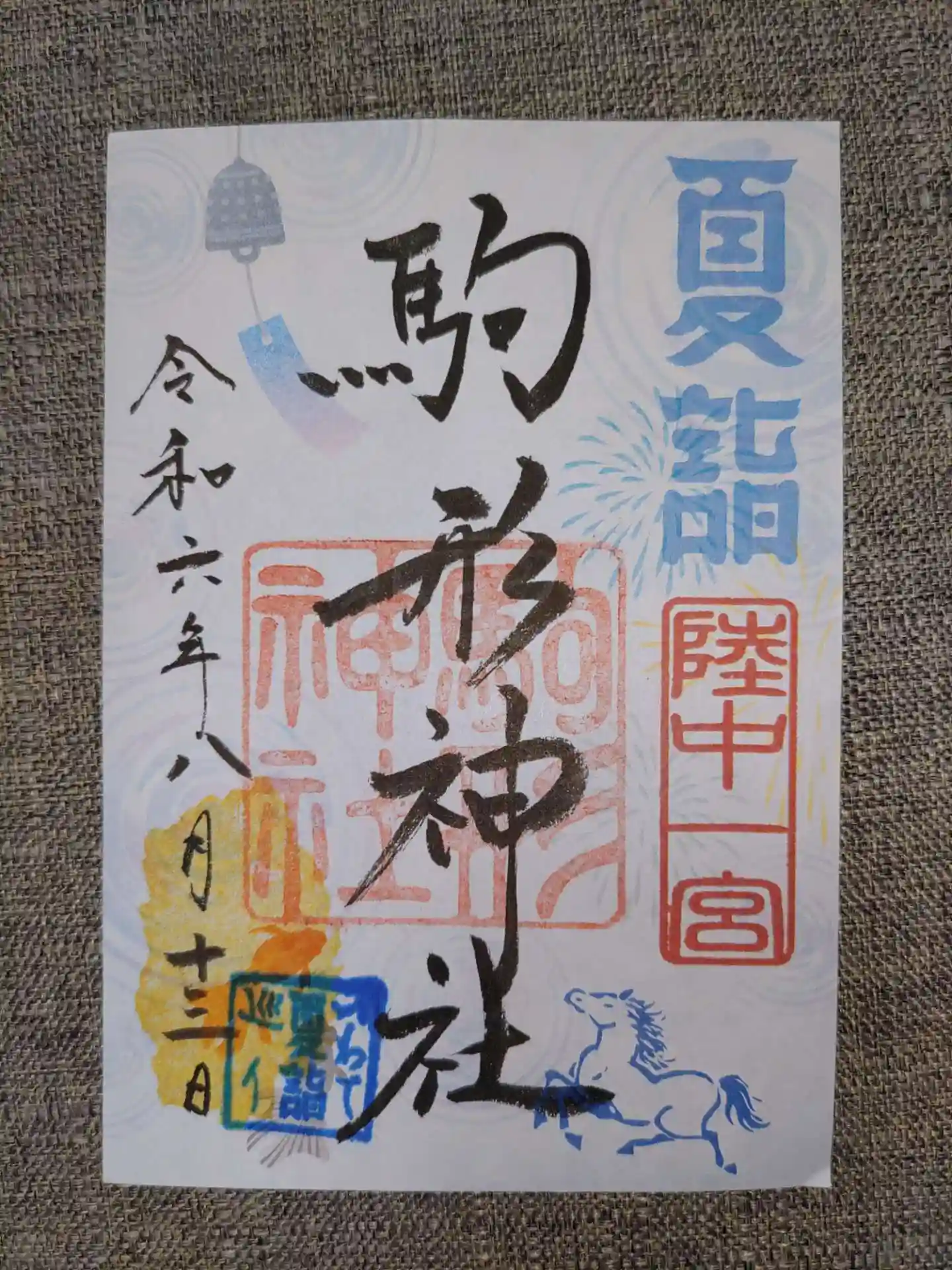 陸中一宮 駒形神社。夏詣期間中は夏詣の押印をいただけます。