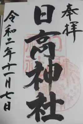 日高神社の御朱印 写真一覧