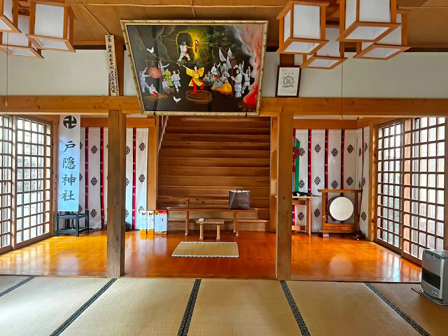 <拝殿>正面。ガラスサッシは新しい。