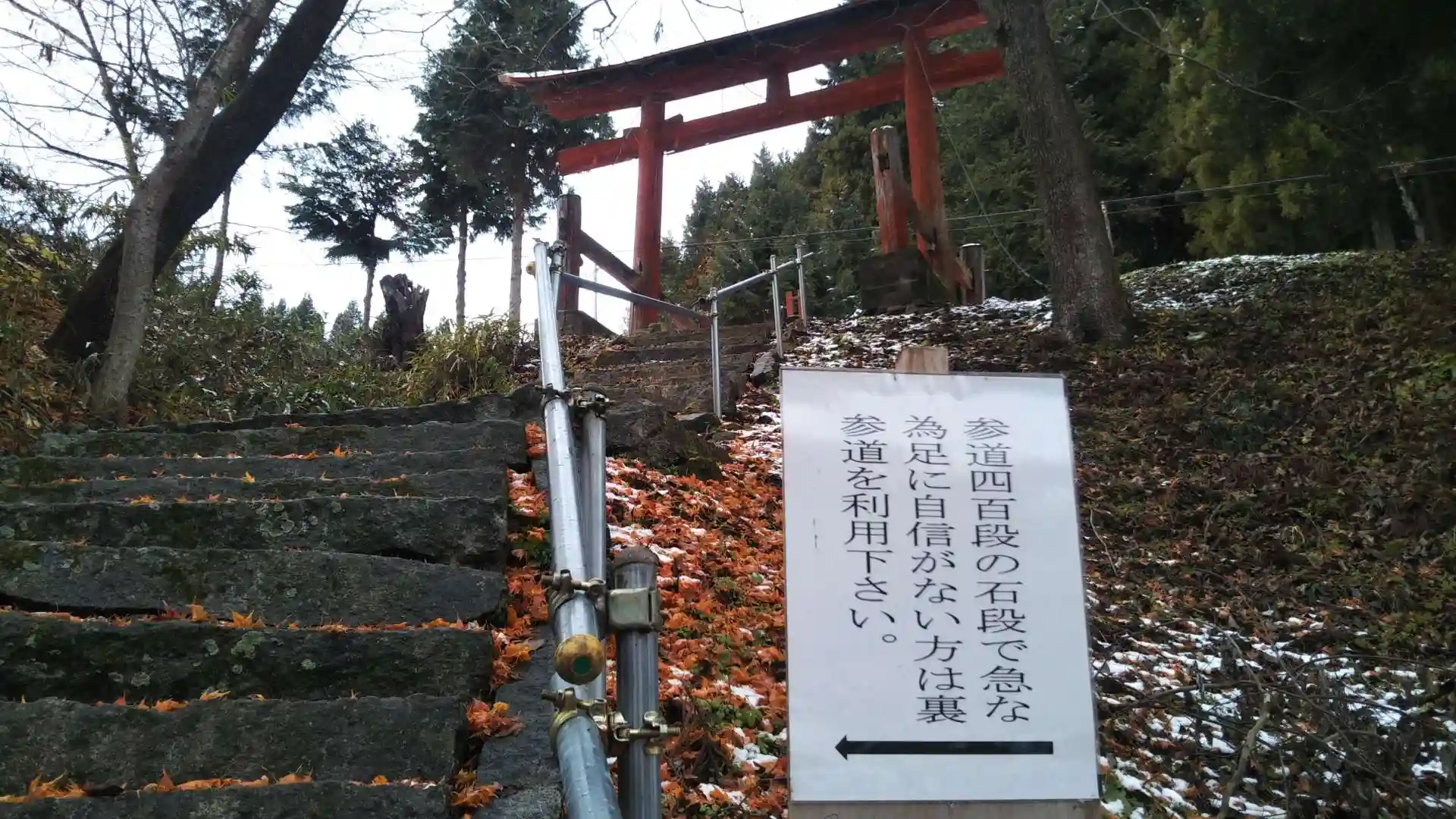 参道は鳥居がなければ立派な登山道、迷わず車で迂回路を登りました。