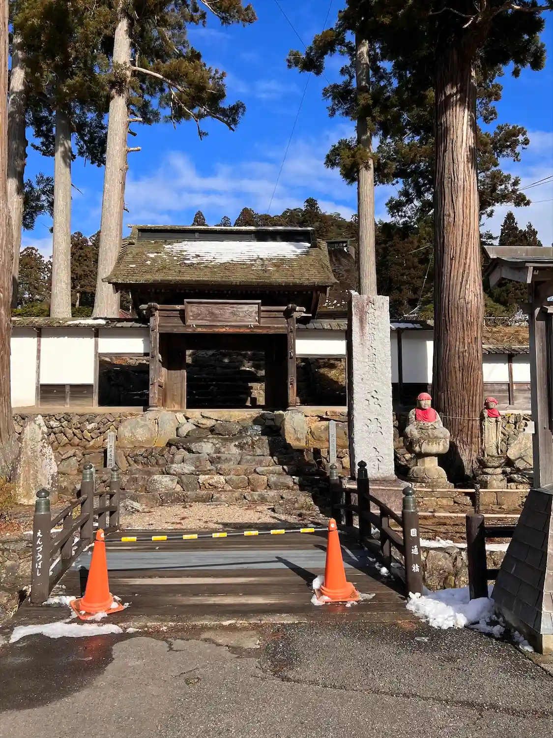 小川に架かる橋を渡ると<惣門>と<寺号標>。