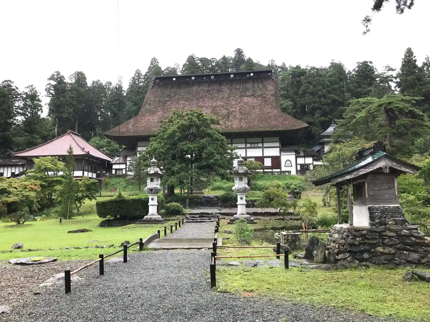 思いがけず大変立派なお寺さんで、特にその藁葺きの大屋根が目に…