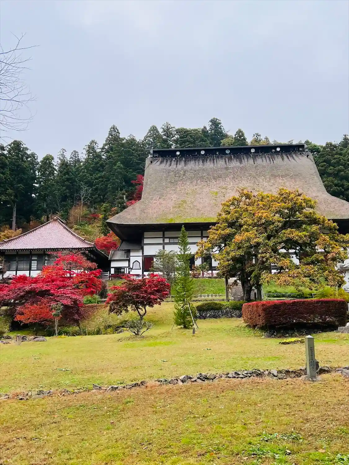 本堂や庫裡の茅葺き屋根は迫力があります。