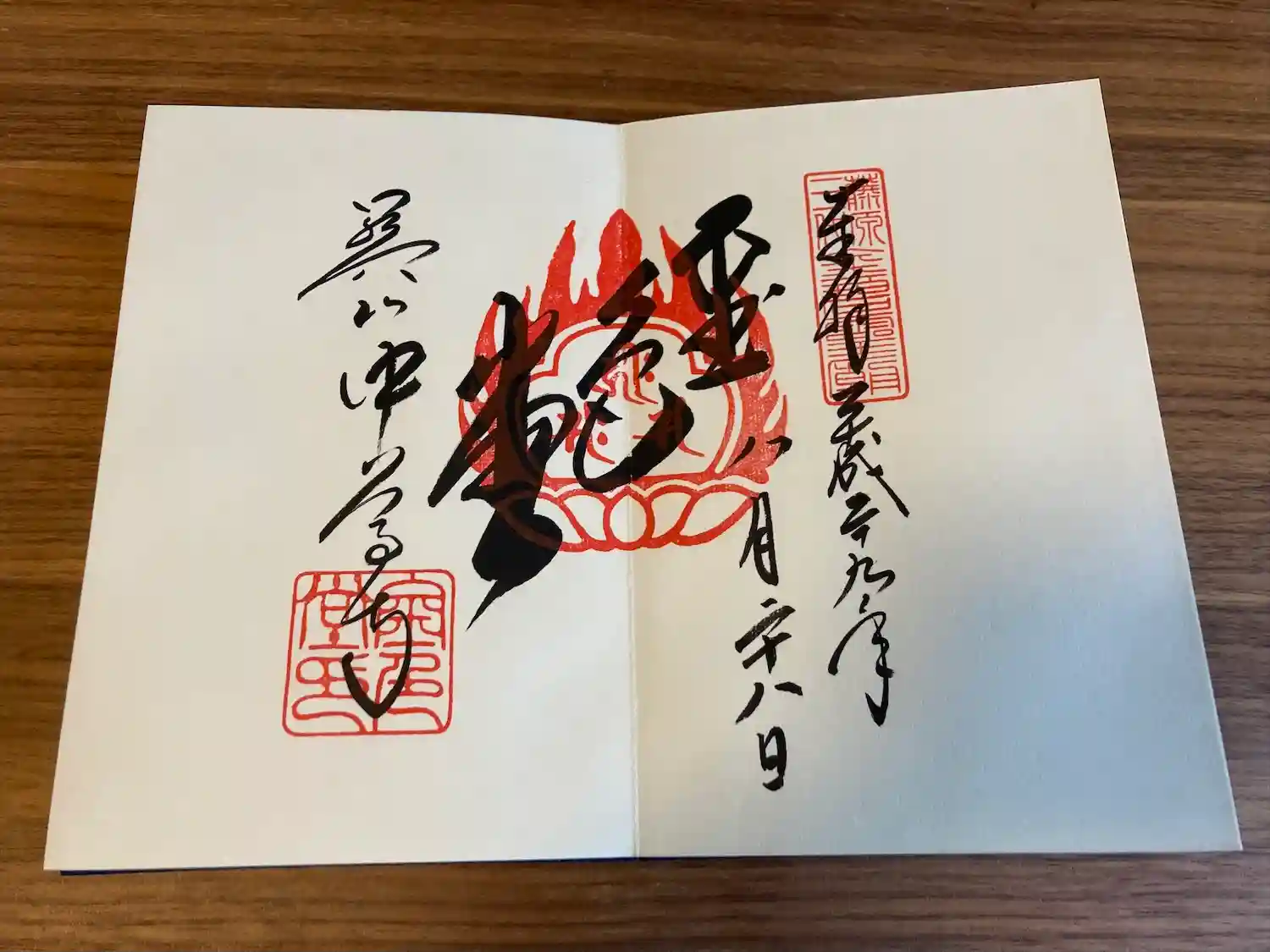世界遺産に登録された翌年に行ってきました。初めて買った御朱印帳で、国宝の金銅華鬘が描かれている重厚な御朱印帳です。