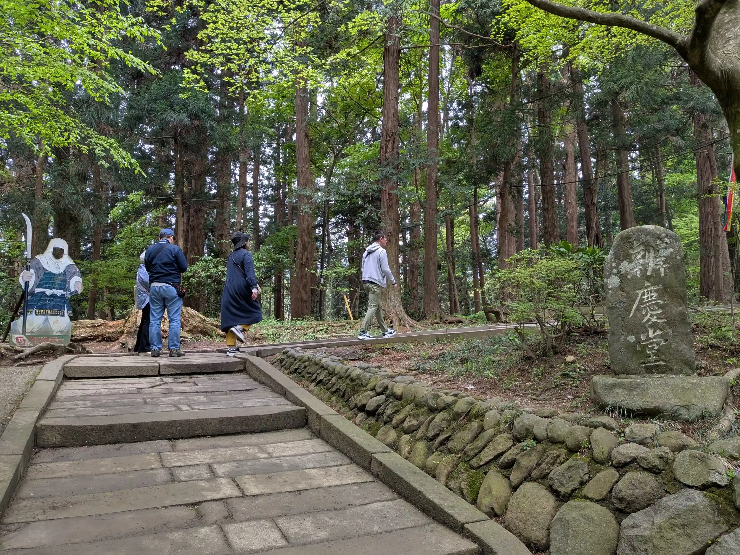 参道にある弁慶の顔出しパネルは、