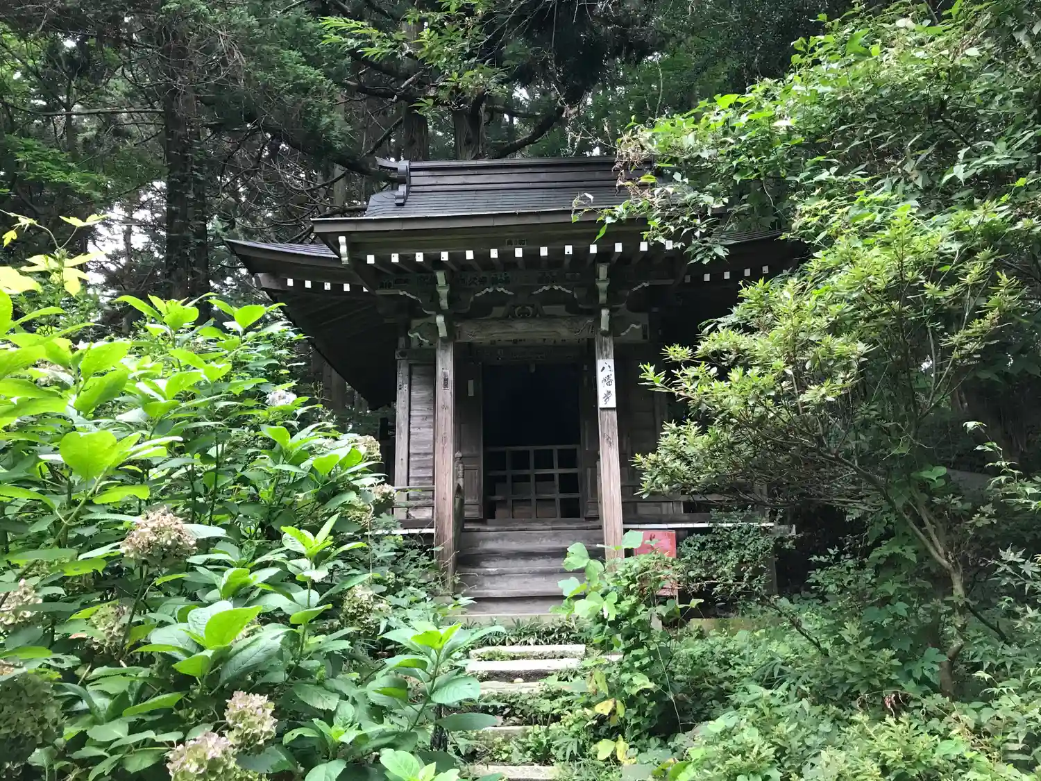 黄金の金色堂が有名ですが、山の中の広大な境内に、お堂がいくつもあります。8月上旬で、まだアジサイ…