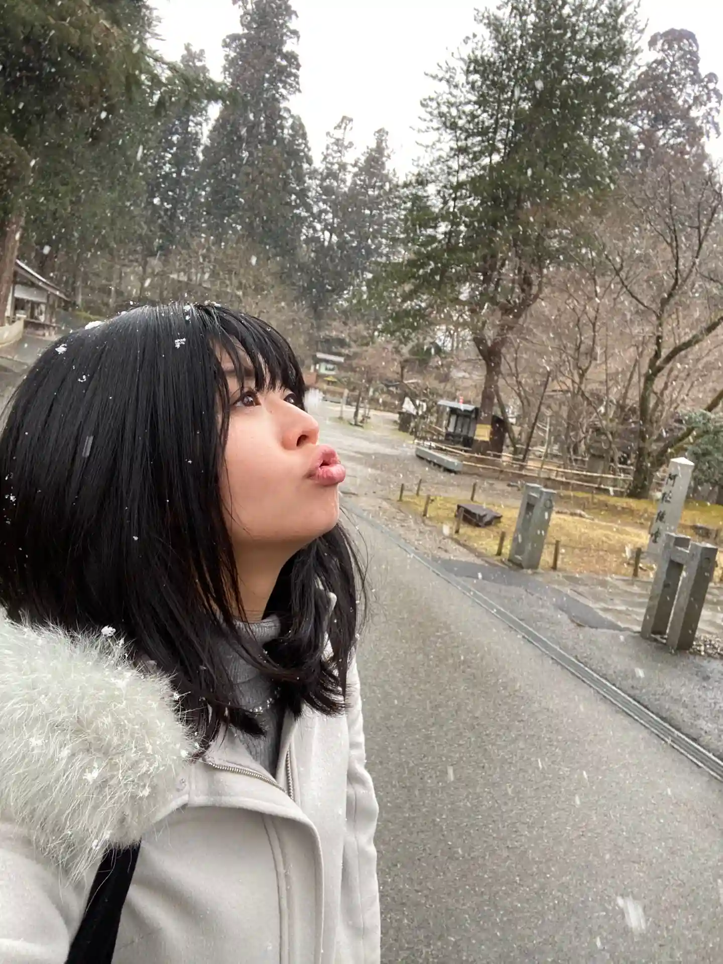 道が凍ってて、帰りは若い人は滑って降りてました。