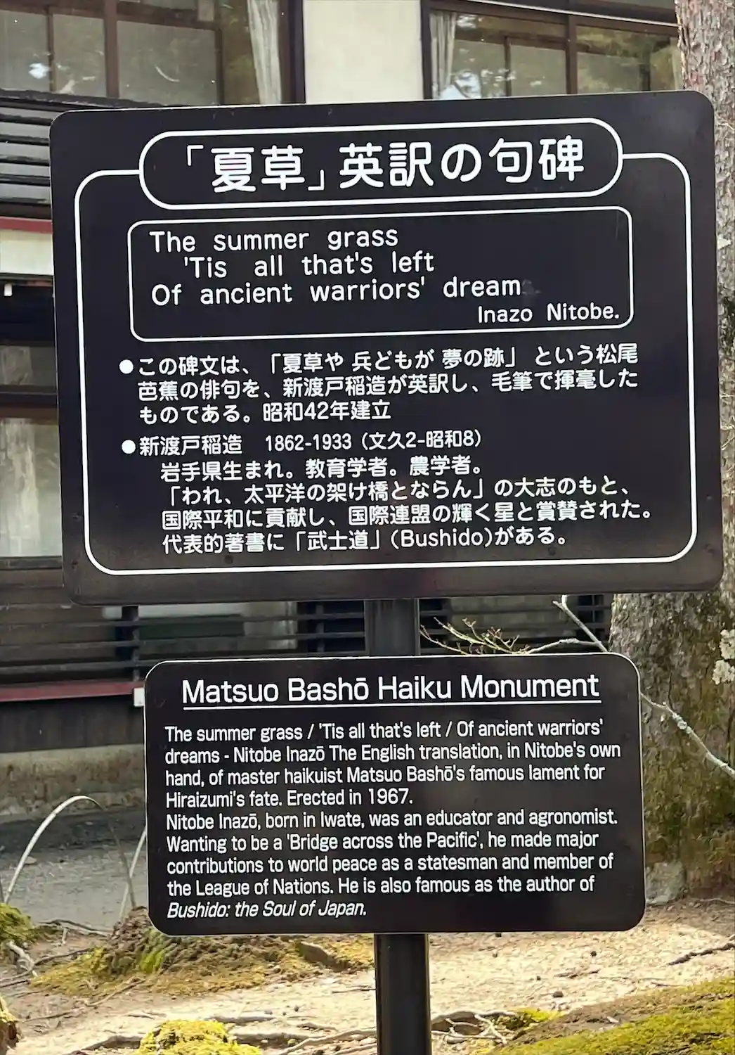 芭蕉の「夏草や〜」の句碑もあり、戦乱時の平泉に思いを馳せたりしました。