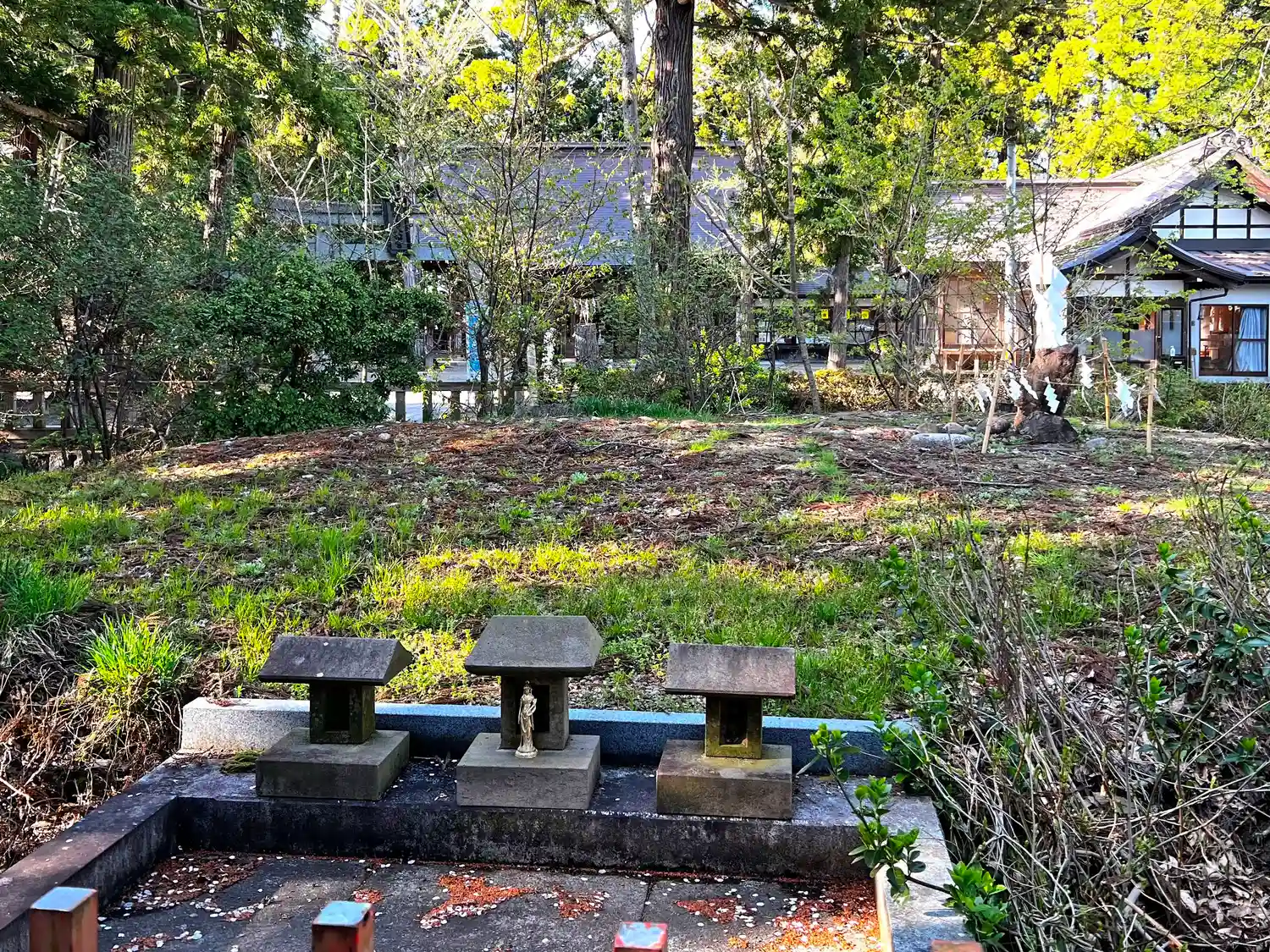 最も北側には、古い石柱や石製小社が集められている。