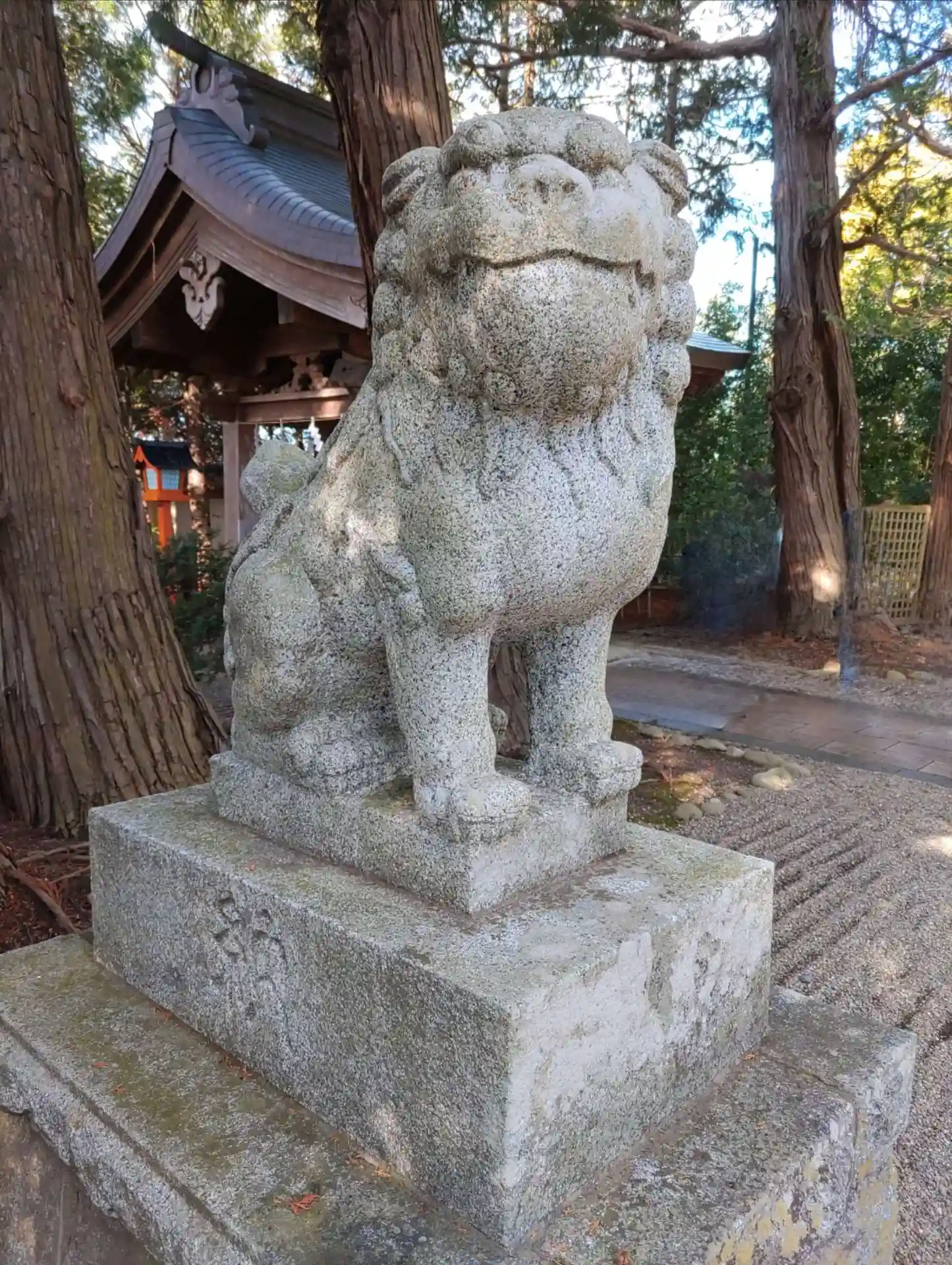 参道左側の<狛犬>。かわいらしい見た目。(o^―^o)