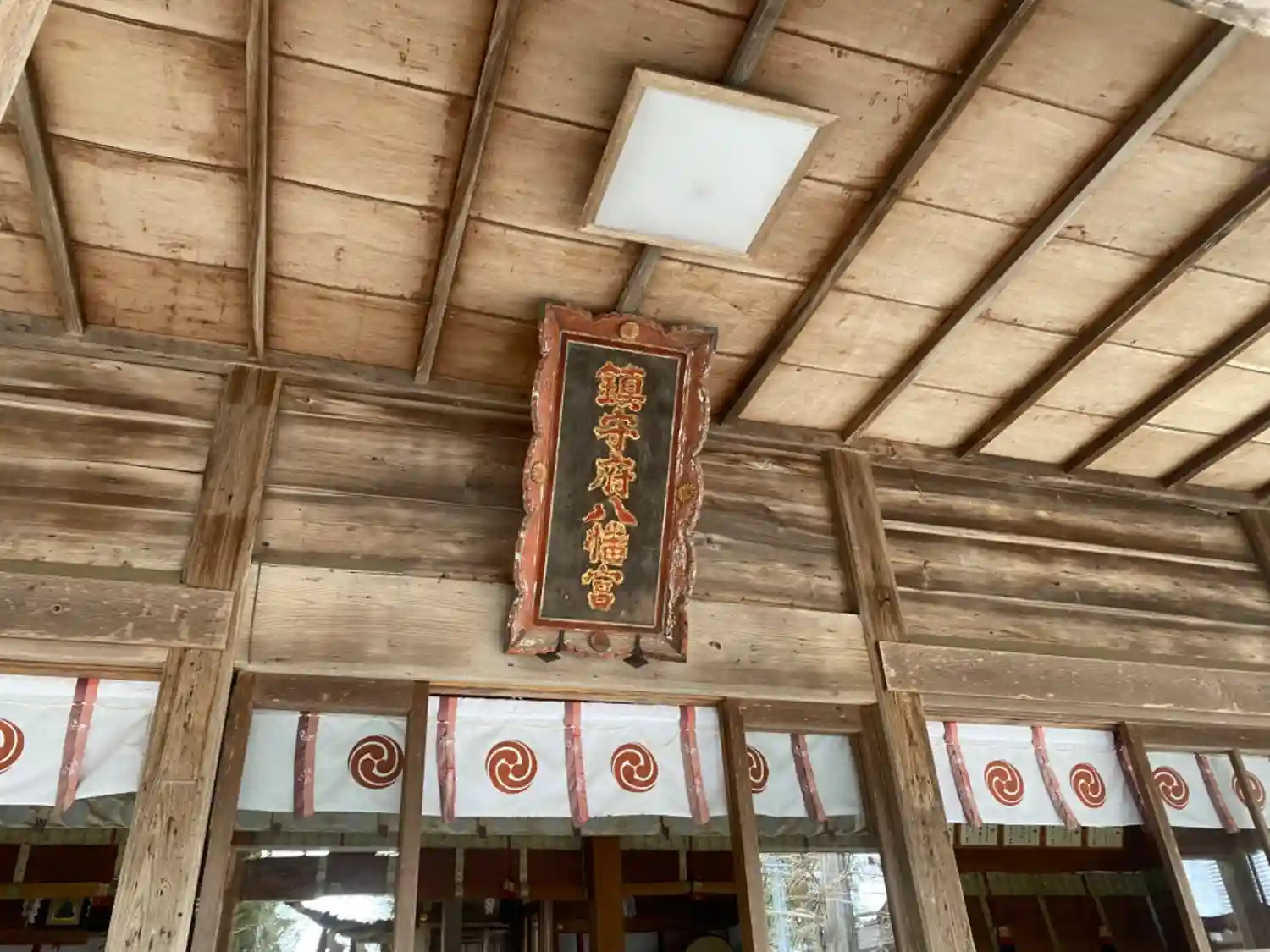 <拝殿>正面部分が二重になっていて、外側と内側の両方に扁額が掛かっている。