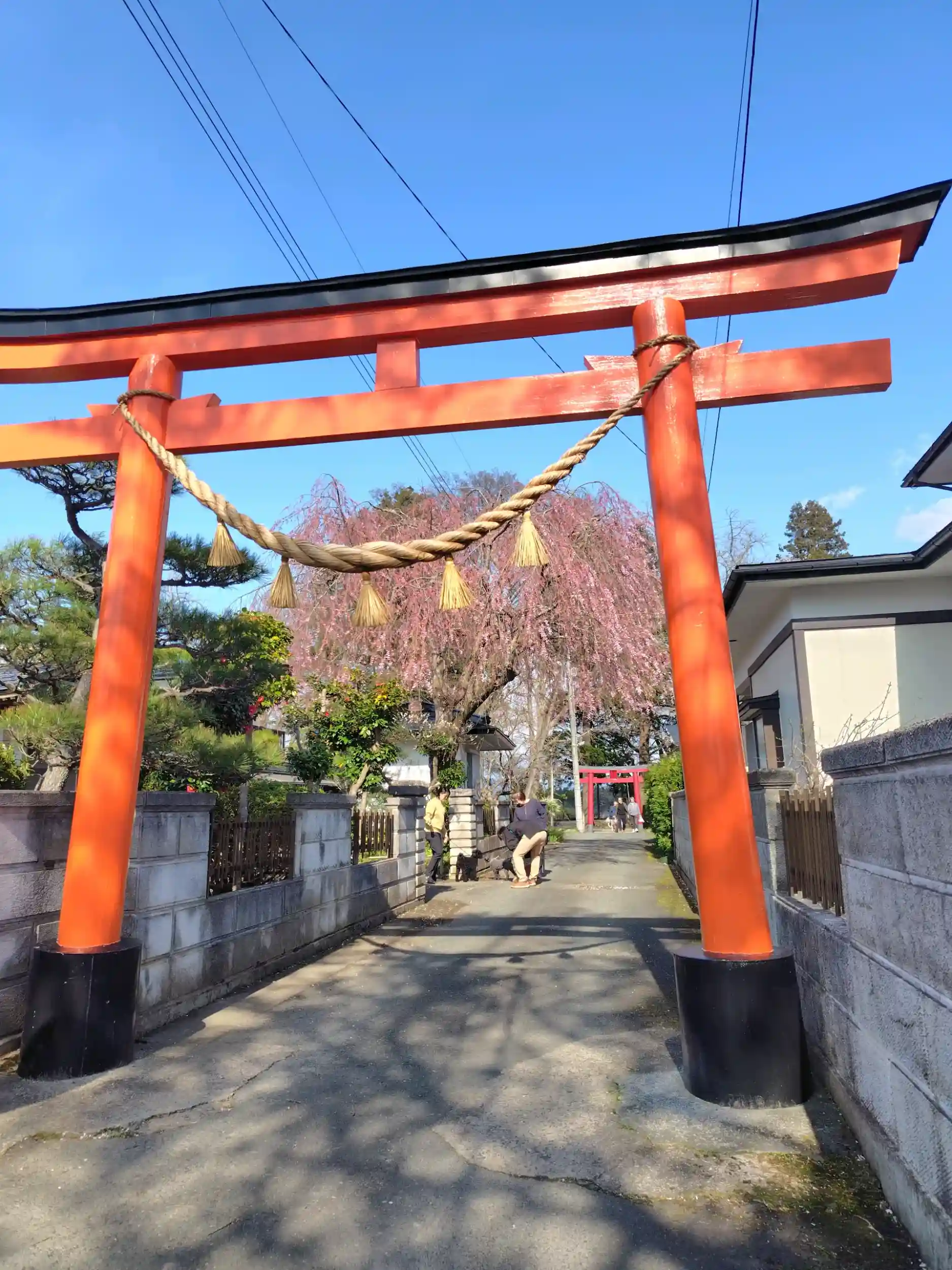 前から気になっていた神社で、参拝させて頂きました。路地を入ると、鳥居と桜が迎えてくれました。