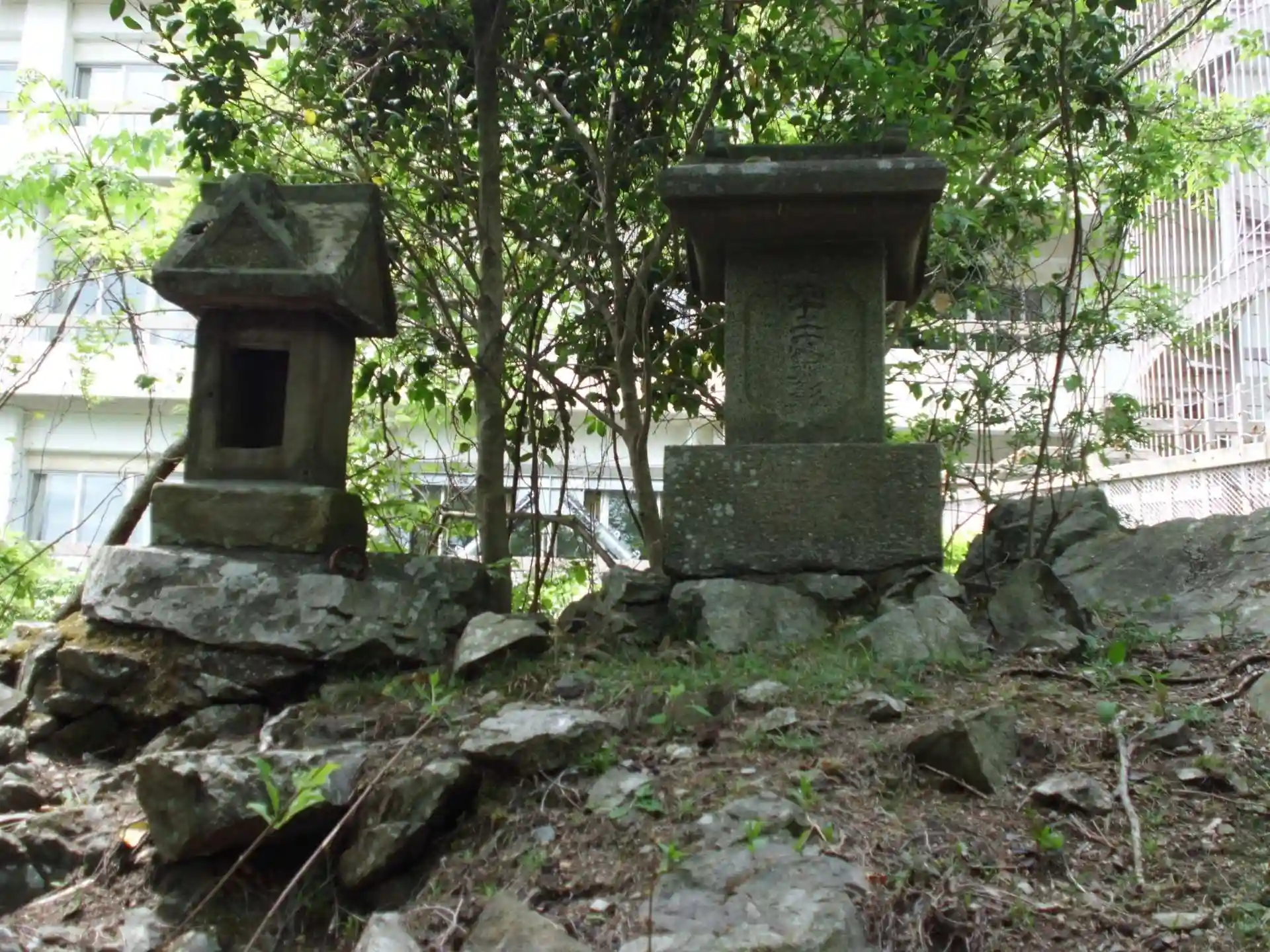 病院の隣にありました。左側の脇の方にお不動尊さまがありお勤めさせて頂きました。