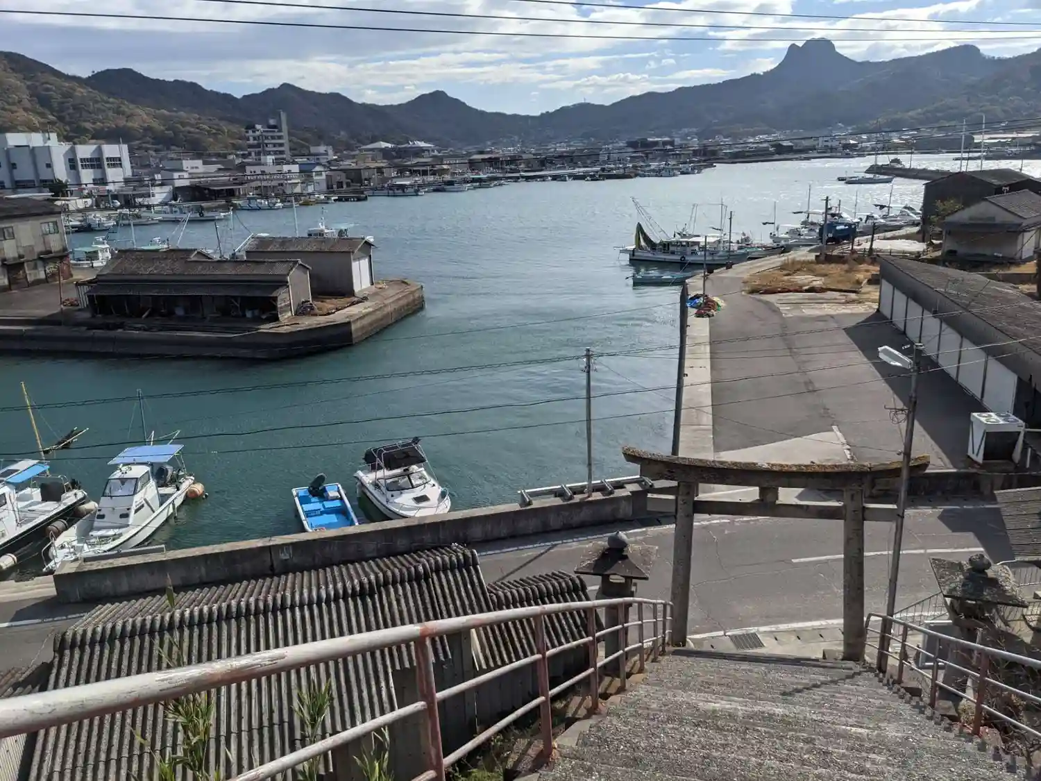 庵治港を見守るように建つ神社を発見