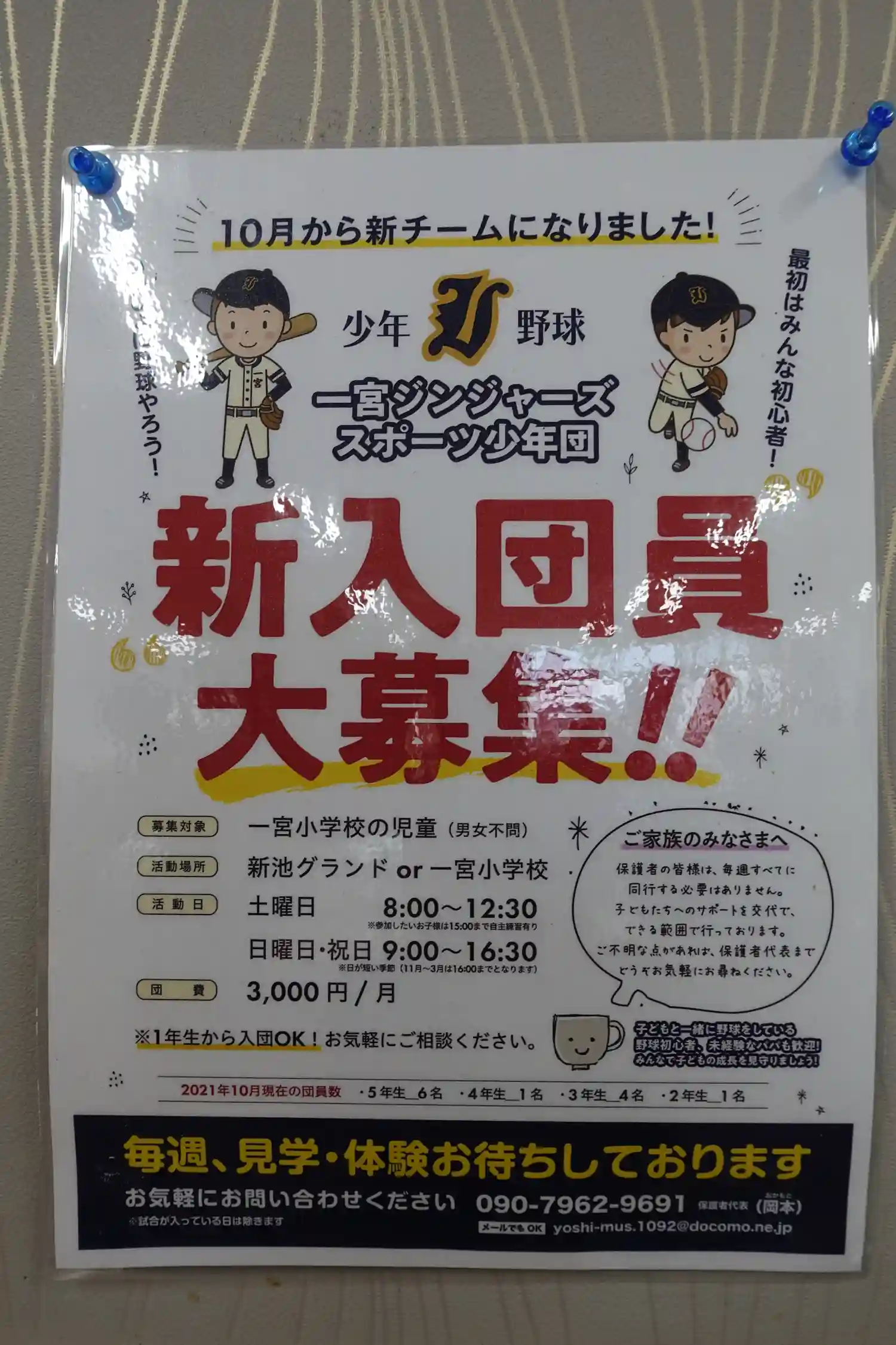 少年野球団員募集チラシ