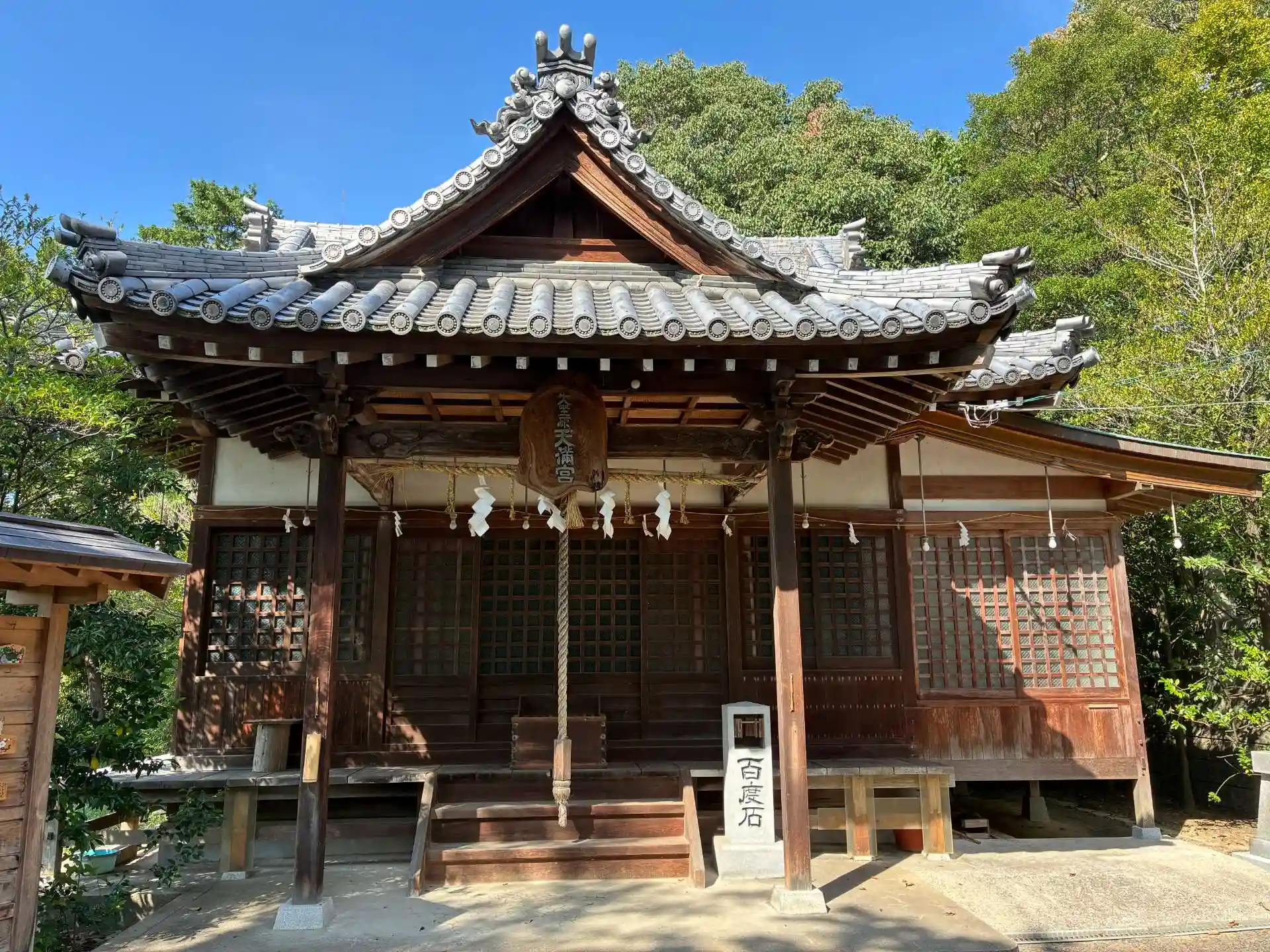 大野原八幡神社を参拝しました。駐車場はありませんが境内は立派な土俵もあるくらい広いので車は簡単に止められました。非常にありがたいです。本殿はかなり立派で古墳にめり込む形で建てられていました。また、本殿の屋根は檜皮葺で作られており珍しいなと思いました。境内社には大野原天満宮もあります。となりに小学校があるので絶好の遊び場でしょうね。