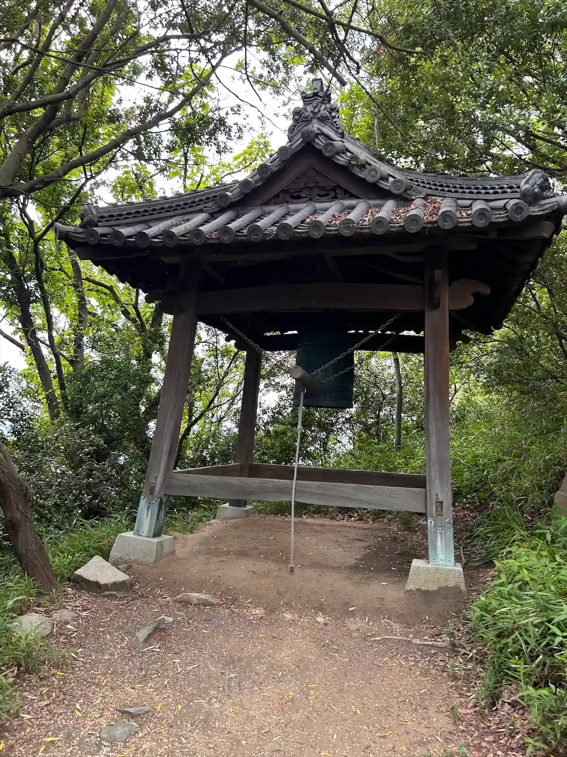 注連柱をくぐって振り返ると、木で見えませんが💦「加茂神社」と女木島の方向に社殿が向いているのが分かります
