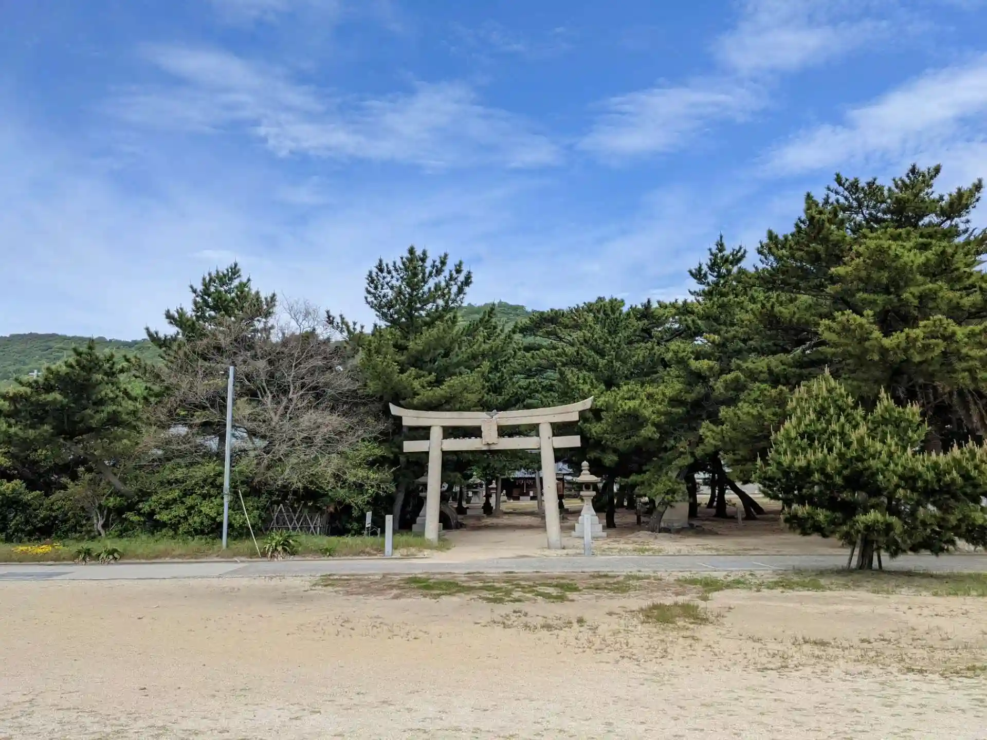 浜辺の側の松林の中に静かに佇む非常に氣の良いお宮で、宮島の弁天様を思い出しました