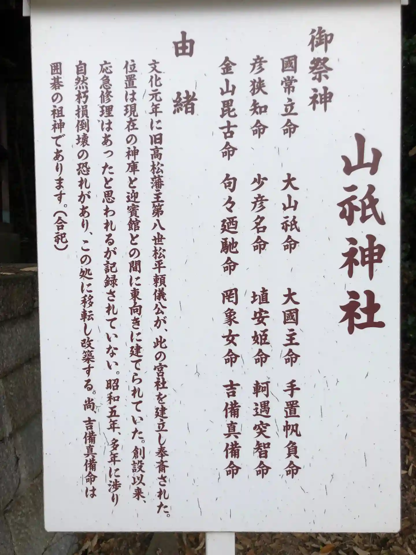 山祇神社由緒書き