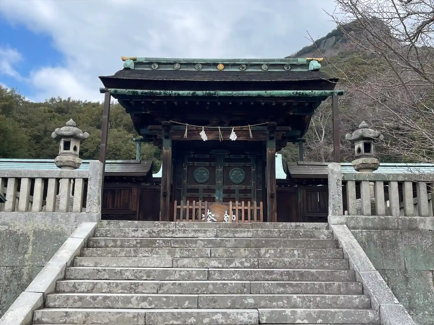 お参りしました🙏神門の隙間から拝殿を覗き見👀階段では異国の女の子たちが撮影大会で通せんぼ😅流行りの…